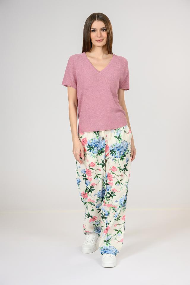 Женский пуловер Rich and Royal нежно-розового цвета с V-образным вырезом и короткими рукавами. Изготовлен из мягкого и приятного к телу трикотажа, станет отличным дополнением к вашему гардеробу. Состав: хлопок 85%, полиамид 11%, микрофибра 4%