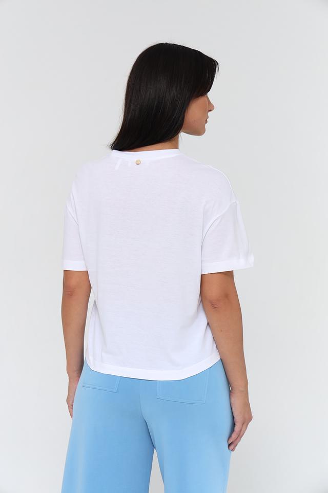 Белая футболка Rich and Royal из 100% хлопка с оригинальным принтом. Укороченный крой и свободный силуэт делают эту модель стильной и комфортной для повседневной носки. Состав: хлопок 100%