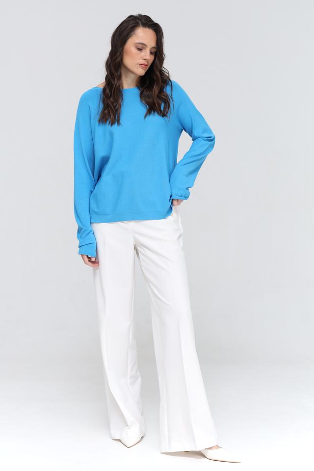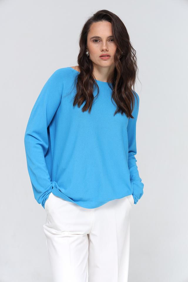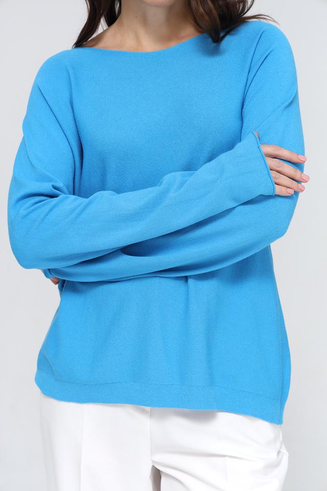 Пуловер имеет классический крой с округлым вырезом горловины и длинными рукавами. Его насыщенный бирюзовый цвет добавит яркости и свежести вашему образу. Благодаря своему универсальному дизайну, этот пуловер легко сочетается с различными предметами одежды – от джинсов и брюк до юбок и платьев.