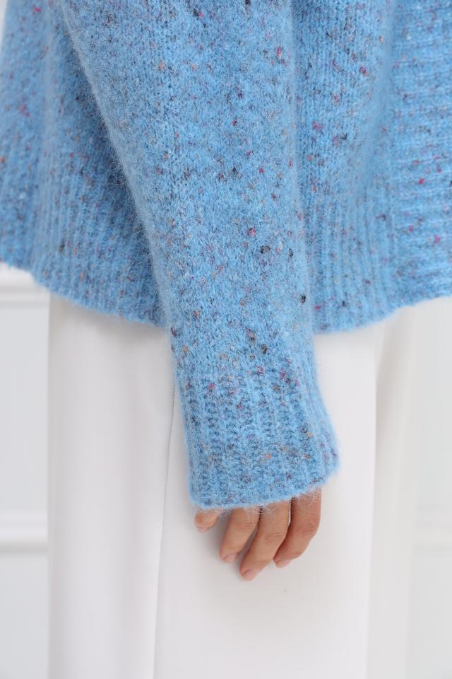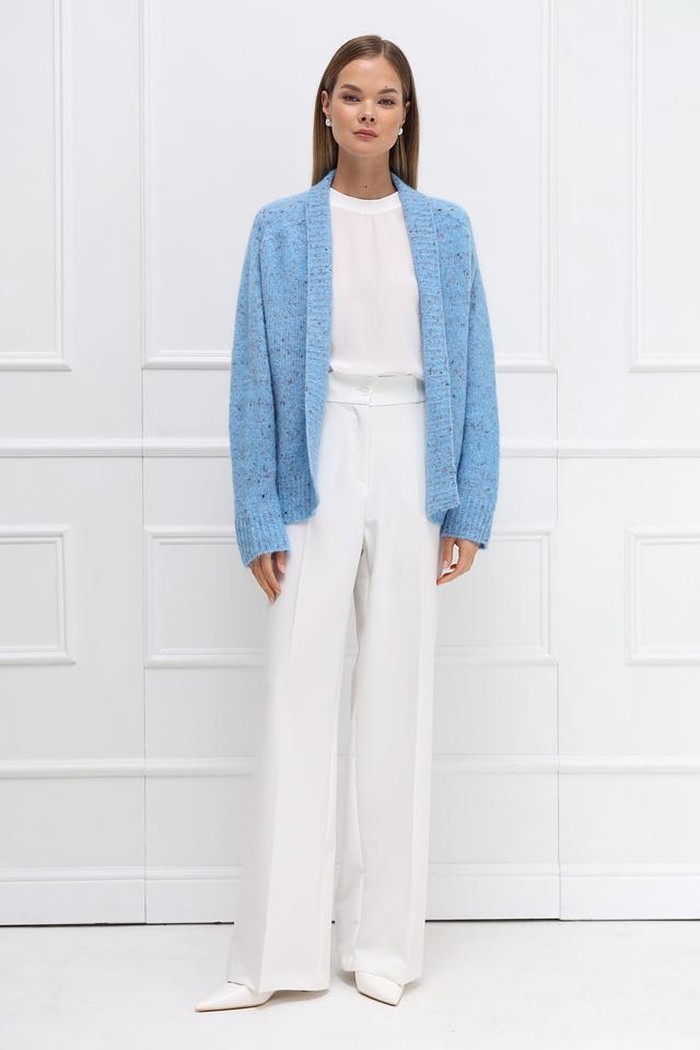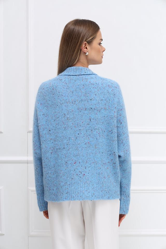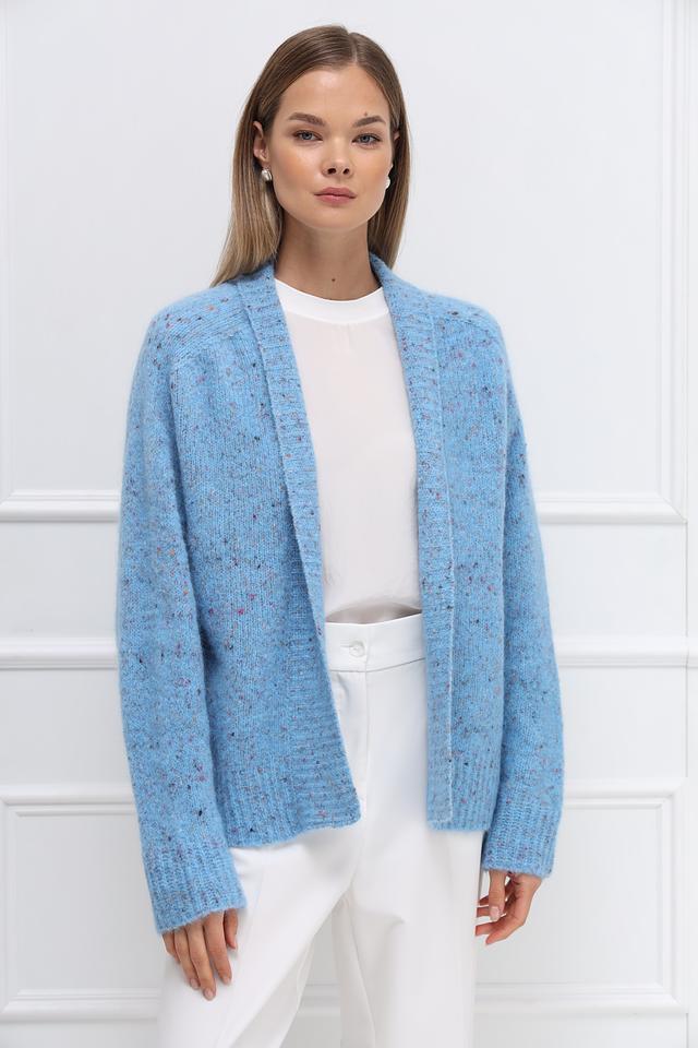 Этот жакет от Rich and Royal выполнен в нежном голубом цвете с добавлением разноцветных вкраплений, создающих эффект меланжа. Модель имеет свободный крой, который обеспечивает комфорт и свободу движений.