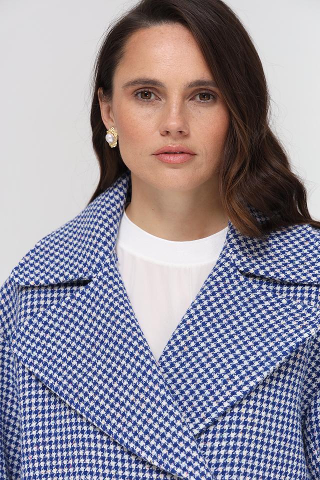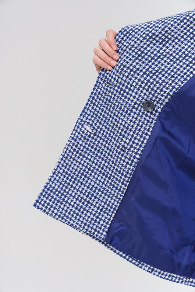 Женская куртка Rich and Royal синего цвета в классическую клетку – стильное и теплое решение для создания элегантного образа. Модель выполнена из плотной ткани с добавлением шерсти, имеет двубортную застежку и удобные карманы. Состав: шерсть 57%, полиэстер 30%, эластан 4%, полиакрил 4%, акрил 4%, шелк 1%