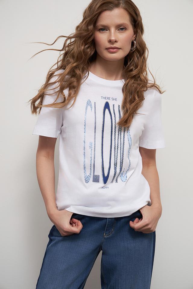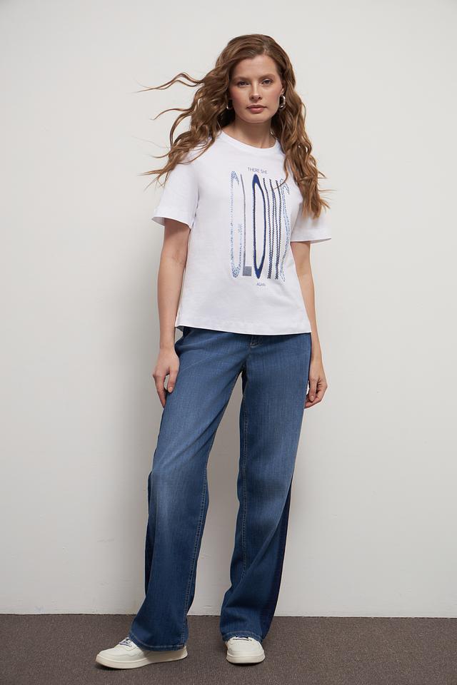 Футболка имеет прямой крой, короткие рукава и круглый вырез горловины. Она прекрасно сочетается с джинсами, шортами или юбками, позволяя создавать разнообразные образы. Эта модель станет незаменимой вещью в вашем повседневном гардеробе.