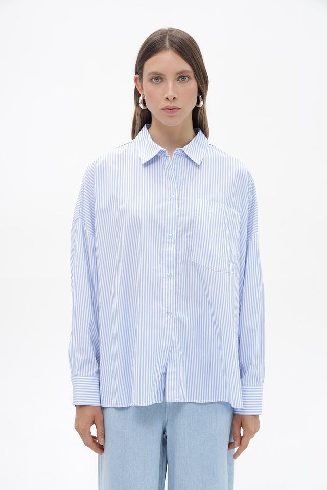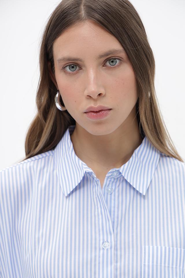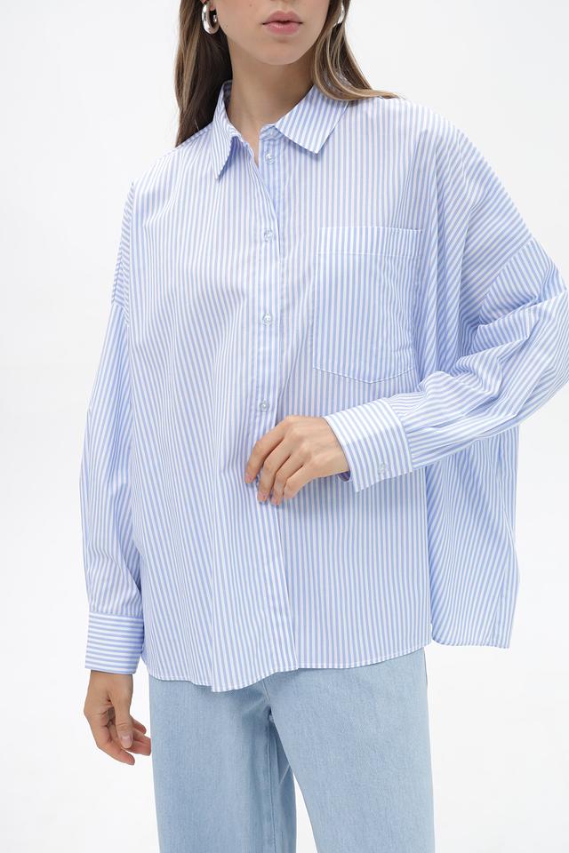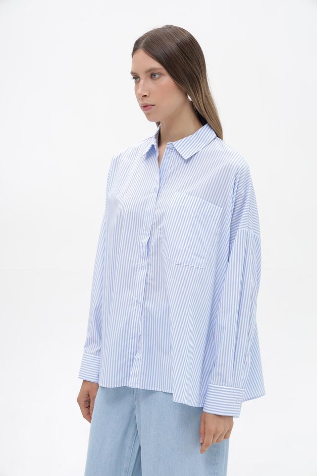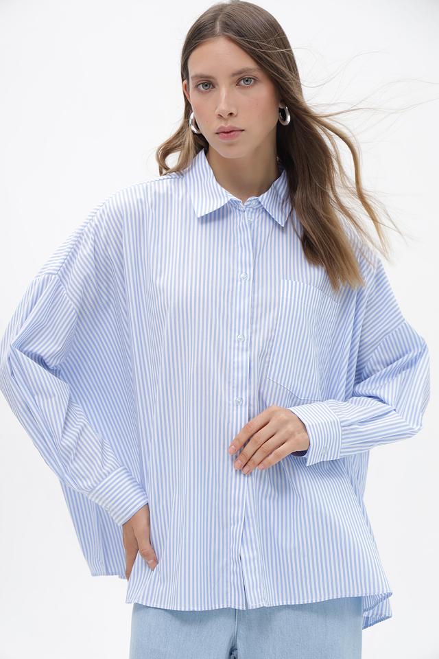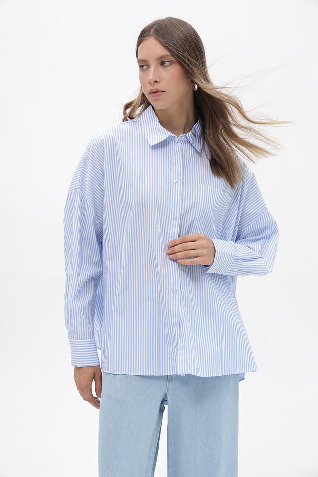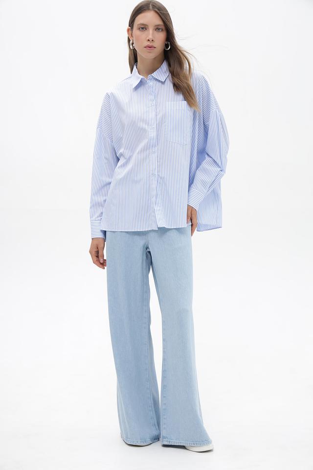Блуза Rich and Royal голубого цвета в классическую полоску – стильное и комфортное решение для повседневного образа. Модель выполнена из 100% хлопка, что обеспечивает приятные ощущения при носке и легкость в уходе. Состав: хлопок 100%