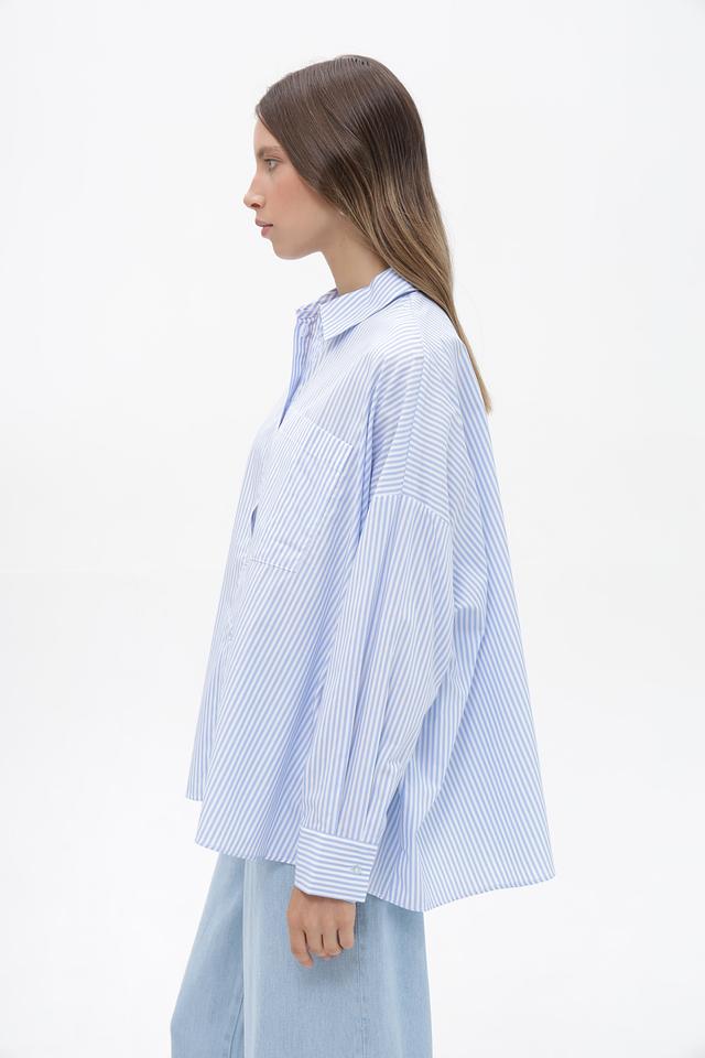 Эта блуза от Rich and Royal станет отличным дополнением к вашему гардеробу. Она выполнена в светлой голубой полоске, что придает ей свежий и легкий вид.