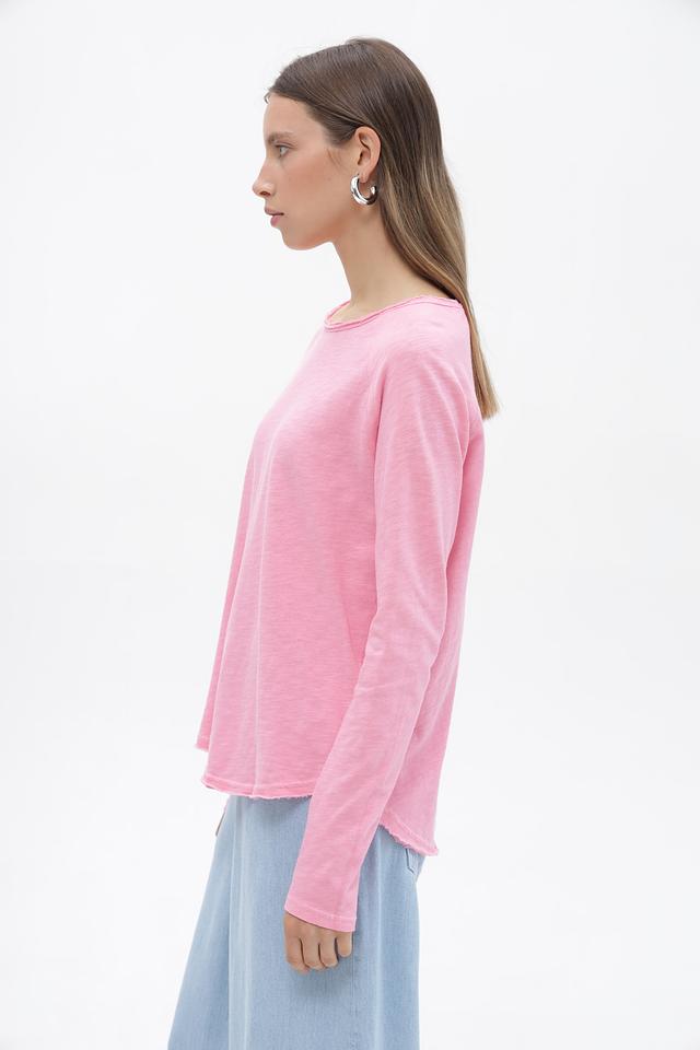 Розовая футболка Rich and Royal с длинным рукавом – это стильная и комфортная модель из 100% хлопка. Футболка имеет слегка заниженную линию плеч и необработанный край низа, что придает ей расслабленный вид. Состав: хлопок 100%