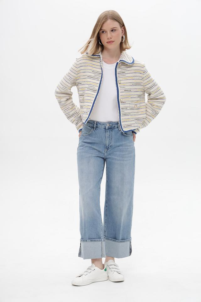Оригинальным элементом дизайна является отложной манжет в нижней части брюк, добавляющий изюминку. Джинсы изготовлены из высококачественного денима, состоящего из 98% хлопка и 2% эластана, что обеспечивает комфорт при носке и хорошую посадку по фигуре. Они идеально подойдут для повседневной носки и создания стильных образов в casual-стиле.