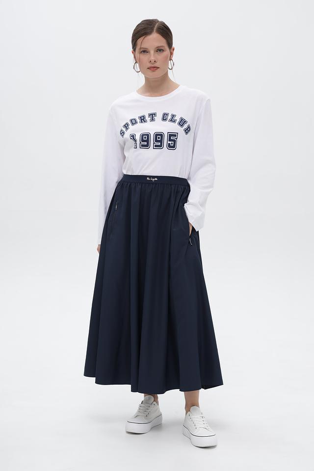 Особенность этой футболки — стильный принт “Sport Club 1995”, выполненный в синем цвете. Принт придает образу непринужденность и спортивный шик. Футболка имеет классический круглый вырез и свободный крой, который не сковывает движений.