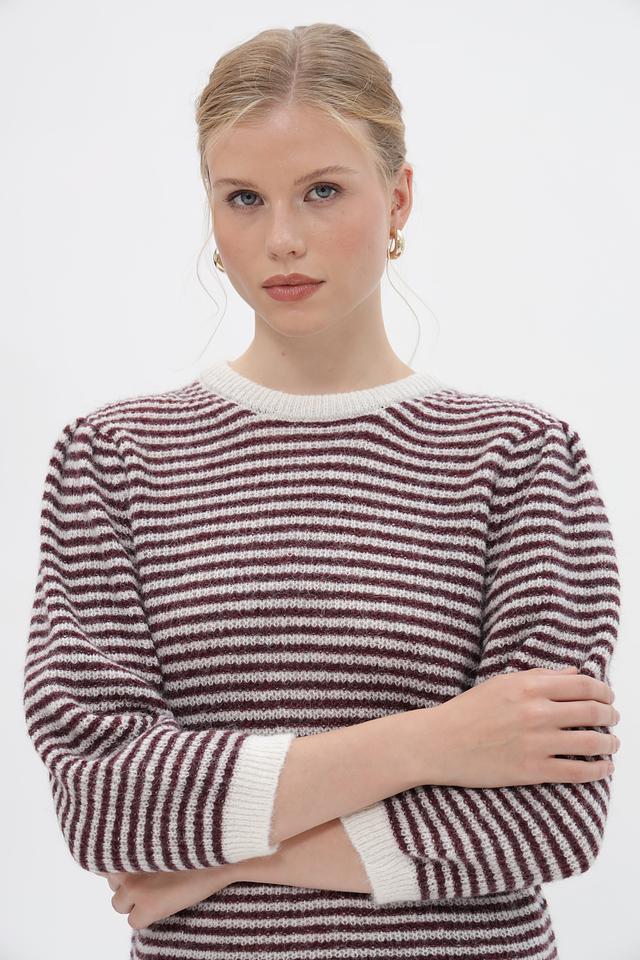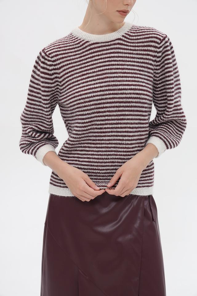 Этот стильный пуловер от Rich and Royal станет прекрасным дополнением к вашему образу. Модель выполнена в классической полоску бордового, серого и белого цветов.