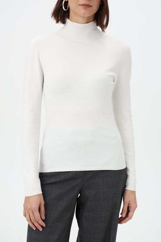 Представляем вашему вниманию элегантную водолазку от бренда Rich and Royal. Модель выполнена в белом цвете с добавлением деликатного люрекса, придающего ей особый шарм и блеск.