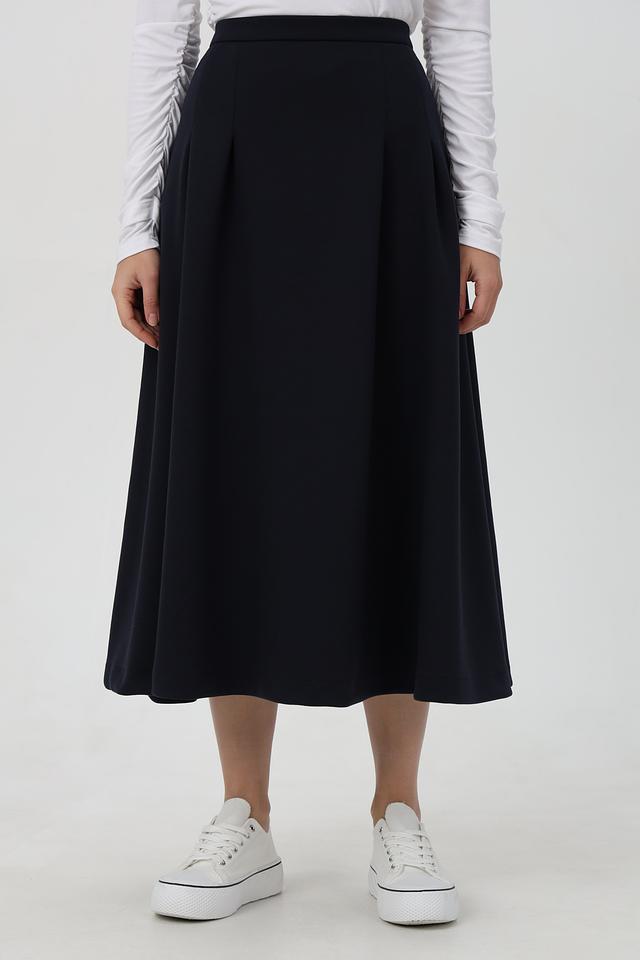 Тёмно-синяя плиссированная юбка от Rich and Royal — элегантная модель длиной миди, выполненная из полиэстера с добавлением вискозы и эластана. Юбка имеет классическую посадку на талии и идеально подойдет для создания разнообразных образов. Состав: полиэстер 72%, вискоза 23%, эластан 5%
