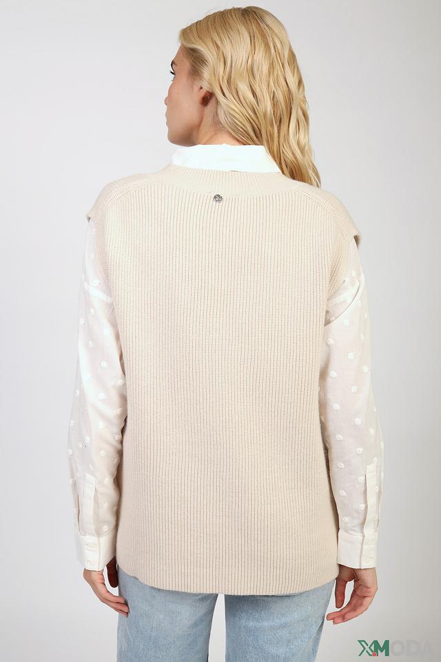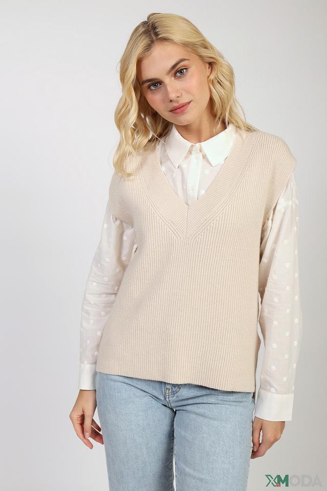 Бежевый жилет Rich and Royal из вязаного трикотажа станет отличным дополнением к вашему гардеробу. Модель имеет V-образный вырез и прямой крой, идеально подходит для создания многослойных образов. Состав: вискоза 52%, полиэстер 26%, полиамид 22%