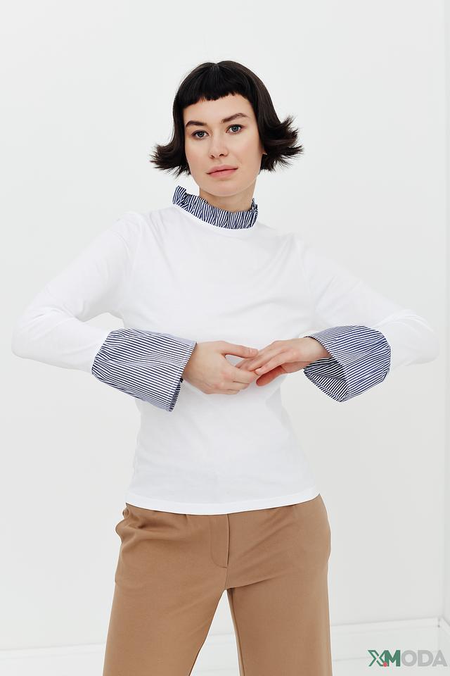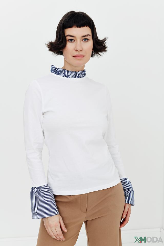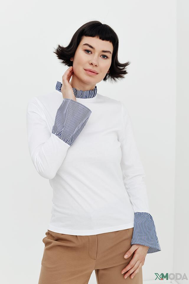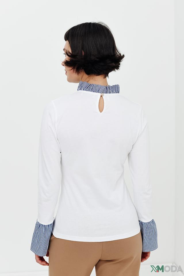 Белая блуза Rich and Royal с длинными рукавами и контрастными манжетами в полоску. Модель выполнена из мягкого хлопка и имеет вырез горловины с декоративной отделкой. Состав: хлопок 100%