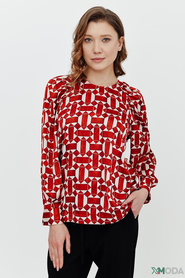 Женская блуза Rich and Royal красного цвета с геометрическим принтом. Модель выполнена из полиэстера и имеет рукава-фонарики, что придает ей романтичный вид. Идеально подойдет для создания стильного образа. Состав: полиэстер 100%
