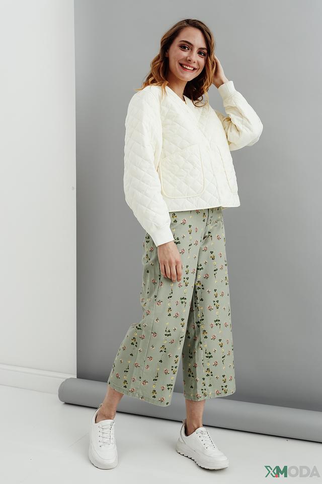 Куртка имеет укороченный крой и стеганую фактуру, что придает ей особый шарм. Застегивается на кнопки, что обеспечивает удобство и быстроту одевания. Воротник-стойка добавляет элегантности.