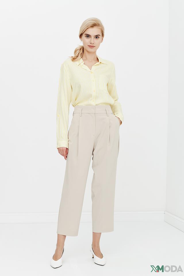 Особенности модели: прямые брюки с зауженным низом, складки спереди, классическая посадка на талии. Брюки отлично сочетаются с блузками, рубашками и жакетами, позволяя создавать разнообразные образы.