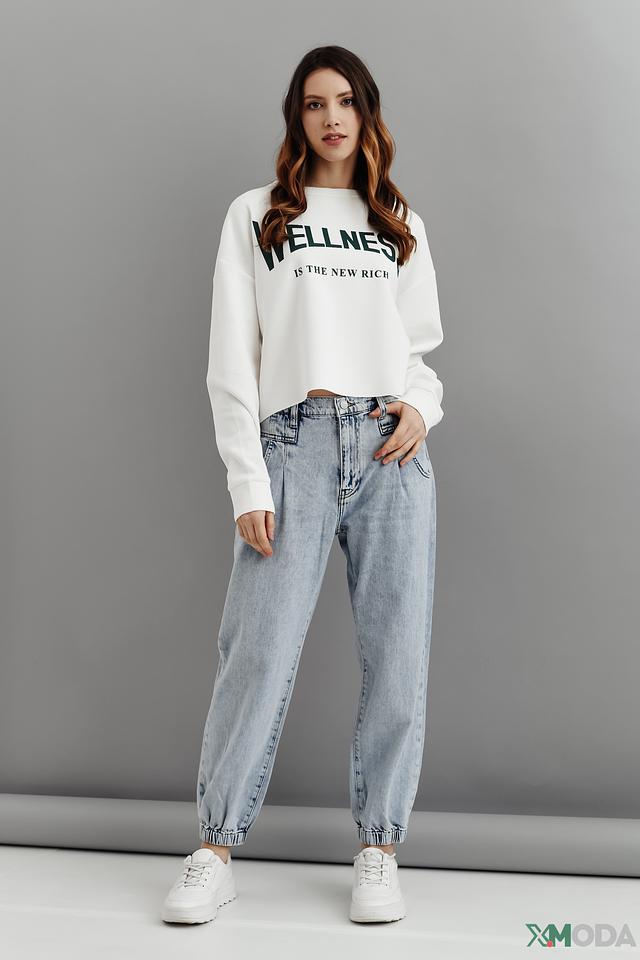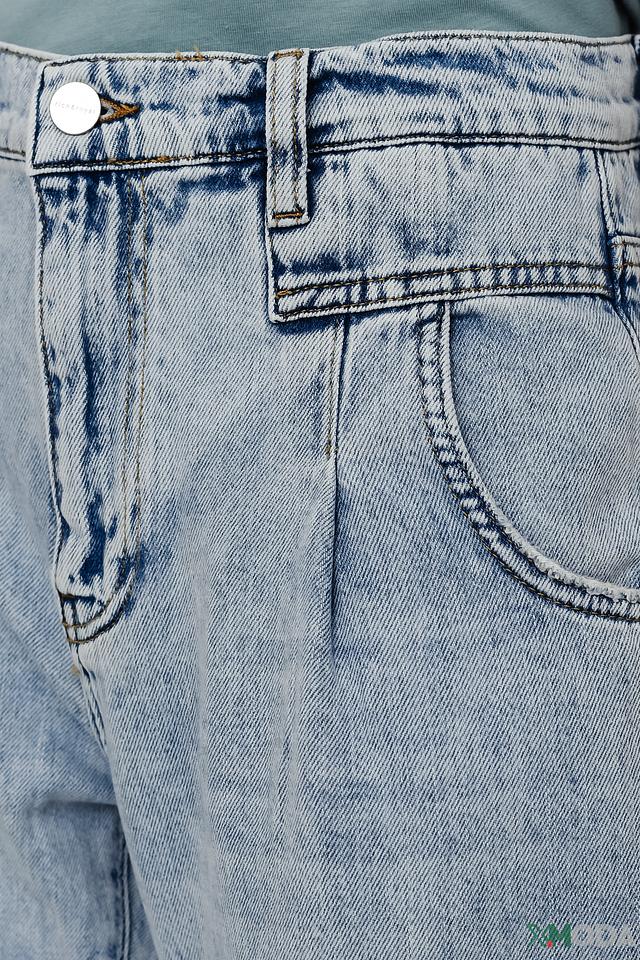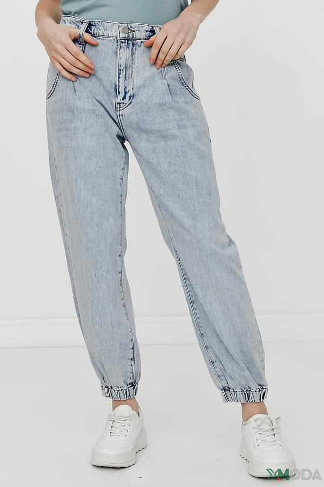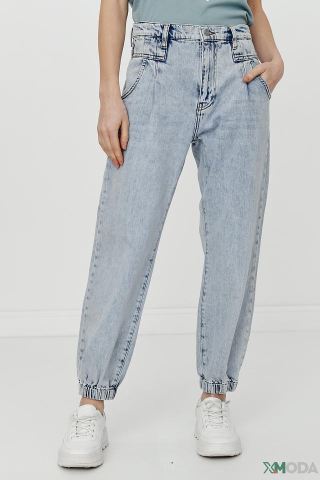 Джинсы имеют свободный крой и завышенную талию, что обеспечивает комфортную посадку по фигуре. Особенности дизайна включают в себя складки на талии и манжеты на щиколотках, создающие современный и непринужденный образ.