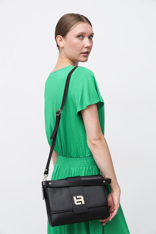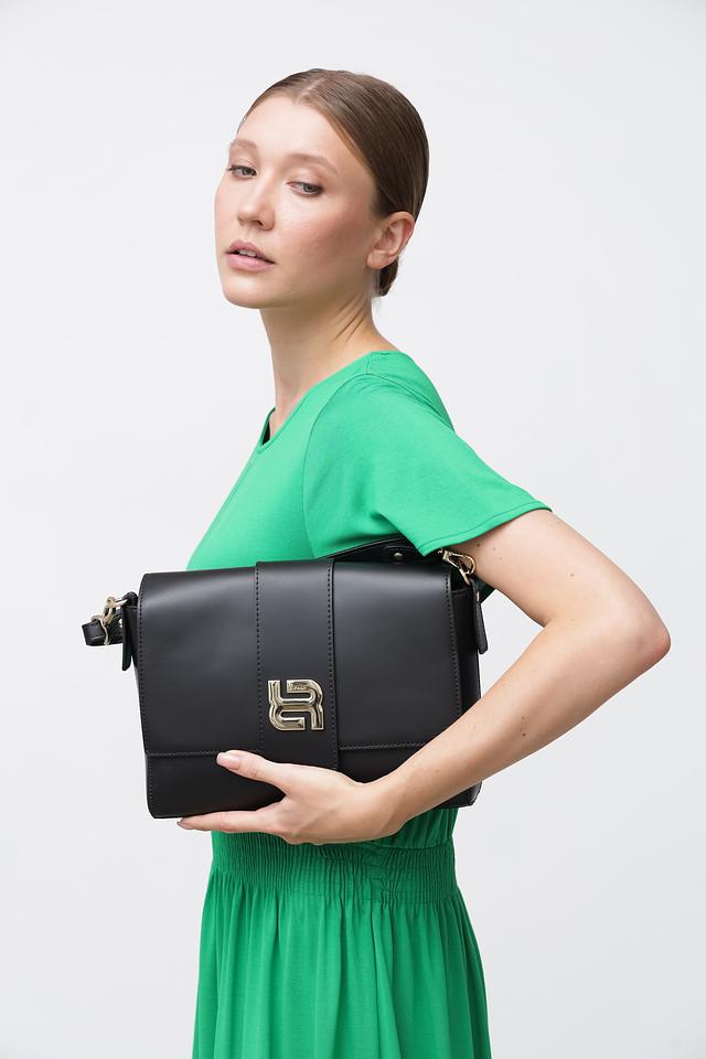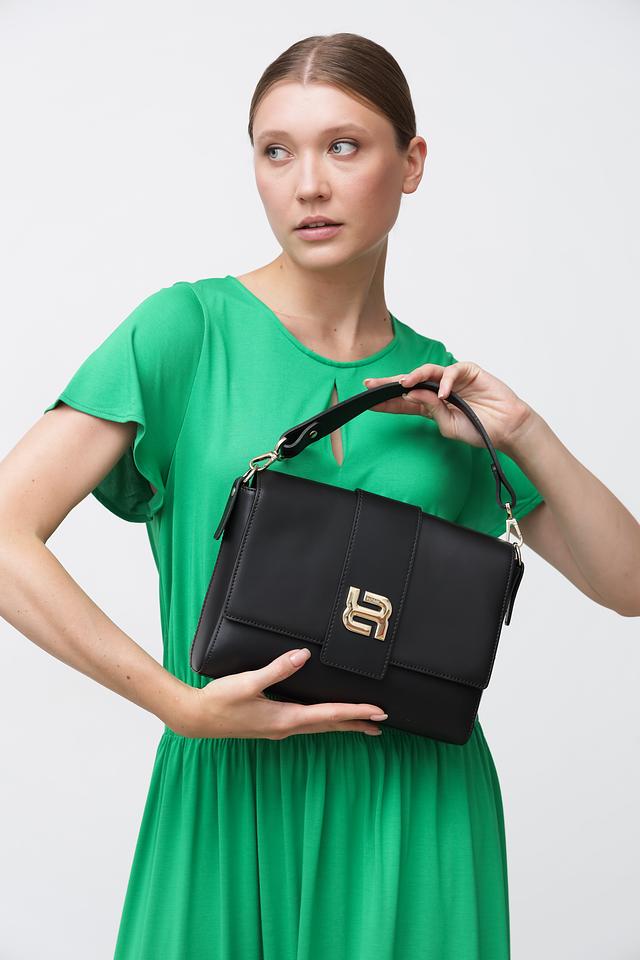 Чёрный цвет сумки делает её универсальной и подходящей для любого случая. Фирменный логотип бренда, выполненный в золотистом цвете, добавляет изысканности и узнаваемости.