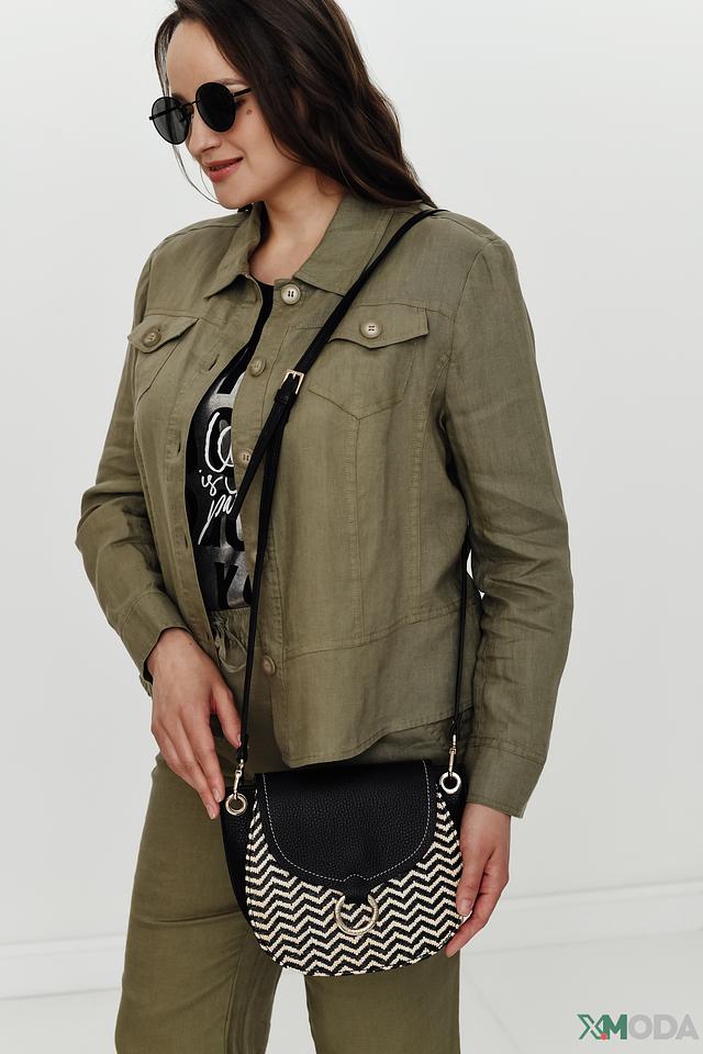 Эта сумка от Ripani – идеальный выбор для тех, кто ценит стиль и функциональность. Сумка выполнена в сочетании чёрного и бежевого цветов, украшена оригинальным зигзагообразным принтом, что придает ей особый шарм.