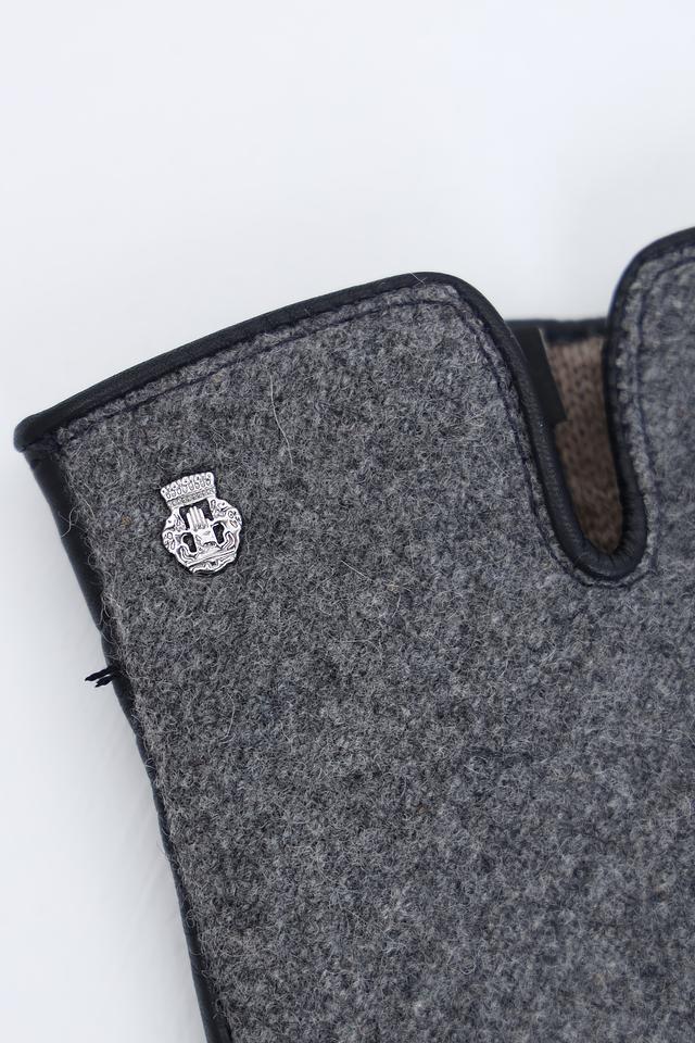 Перчатки выполнены в сером цвете с контрастными черными кожаными вставками на ладонях и тыльной стороне. Такое сочетание делает их универсальными и подходящими к различным стилям одежды. Материал верха – плотная, качественная ткань, обеспечивающая тепло и комфорт в холодную погоду. Ладони выполнены из натуральной кожи, что гарантирует надежный захват и долговечность.