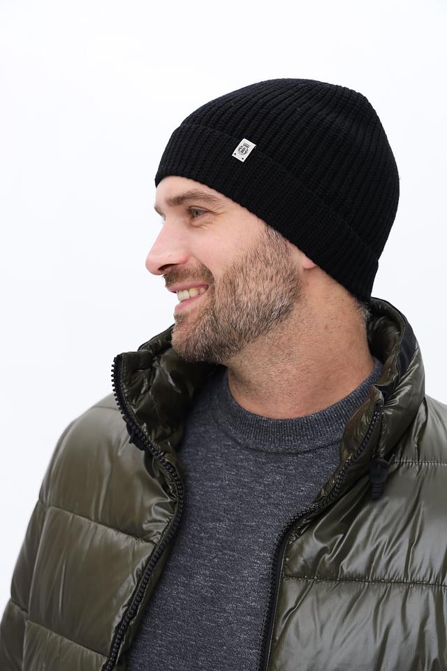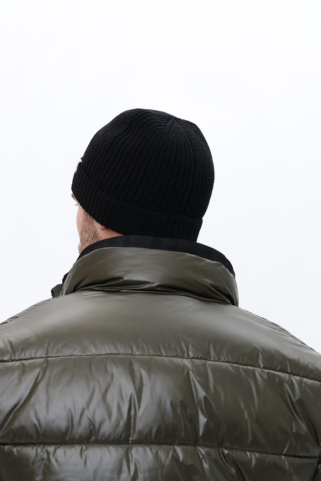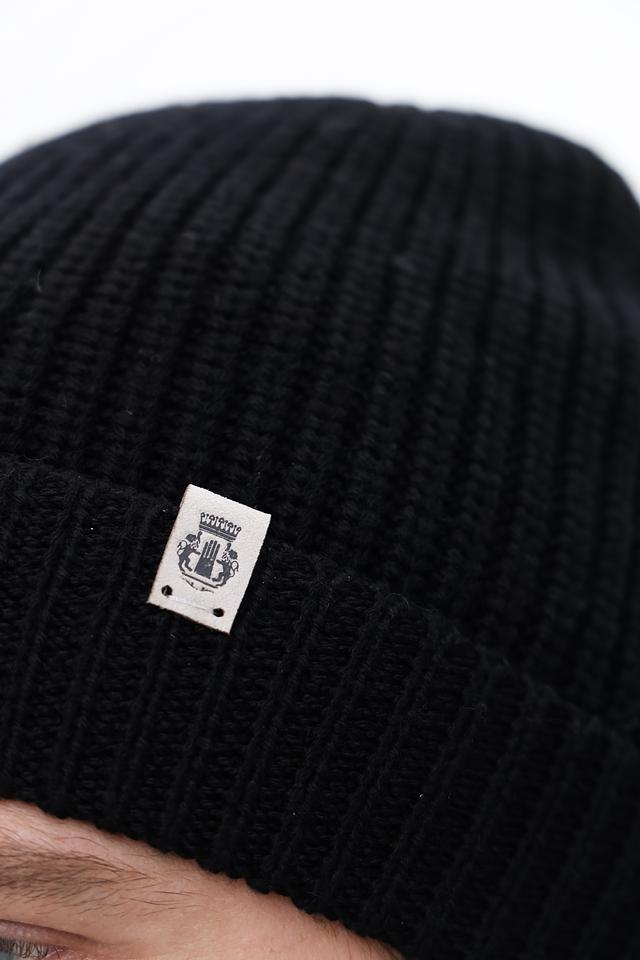 Шапка имеет плотную вязку, которая хорошо держит форму и обеспечивает надежную защиту от холода. На передней части шапки расположен небольшой логотип бренда, выполненный в виде нашивки.