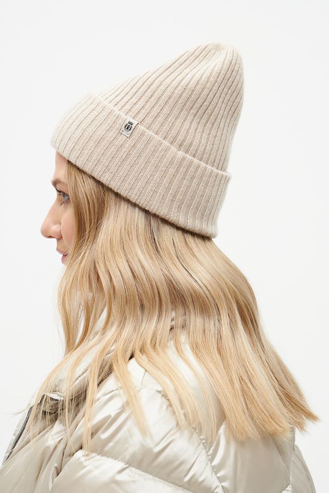Шапка имеет классический дизайн с отворотом, который можно носить как в поднятом, так и в опущенном виде. На лицевой стороне шапки расположен небольшой логотип бренда Roeckl, выполненный в виде нашивки.