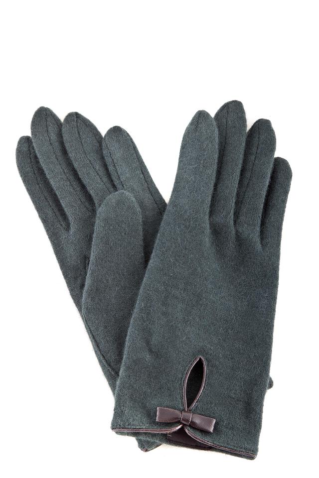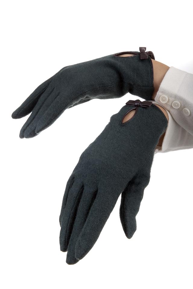 Женские перчатки Roeckl тёмно-зелёного цвета с декоративным бантом из искусственной кожи. Модель выполнена из мягкой шерсти с добавлением нейлона и ангоры для тепла и комфорта. Состав: шерсть 80%, нейлон 10%, ангора 10%