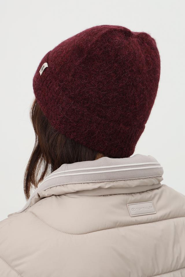 Шапка выполнена в насыщенном бордовом цвете, который легко сочетается с различными оттенками верхней одежды. Модель имеет классическую форму бини, плотно прилегающую к голове, что обеспечивает надежную защиту от ветра и холода.