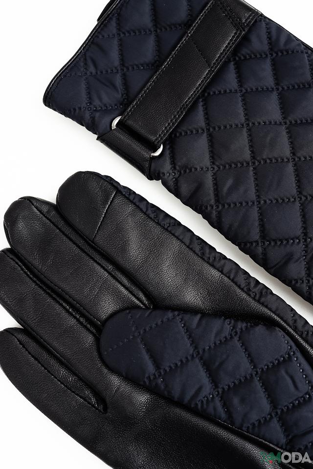 Перчатки изготовлены из высококачественной кожи, что обеспечивает мягкость, комфорт и долговечность изделия. Часть перчаток украшена стежкой, придающей им стильный и современный вид. На тыльной стороне перчатки расположен небольшой металлический логотип бренда.