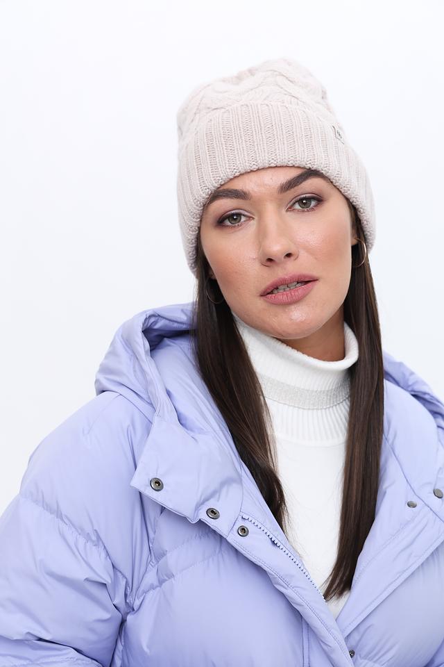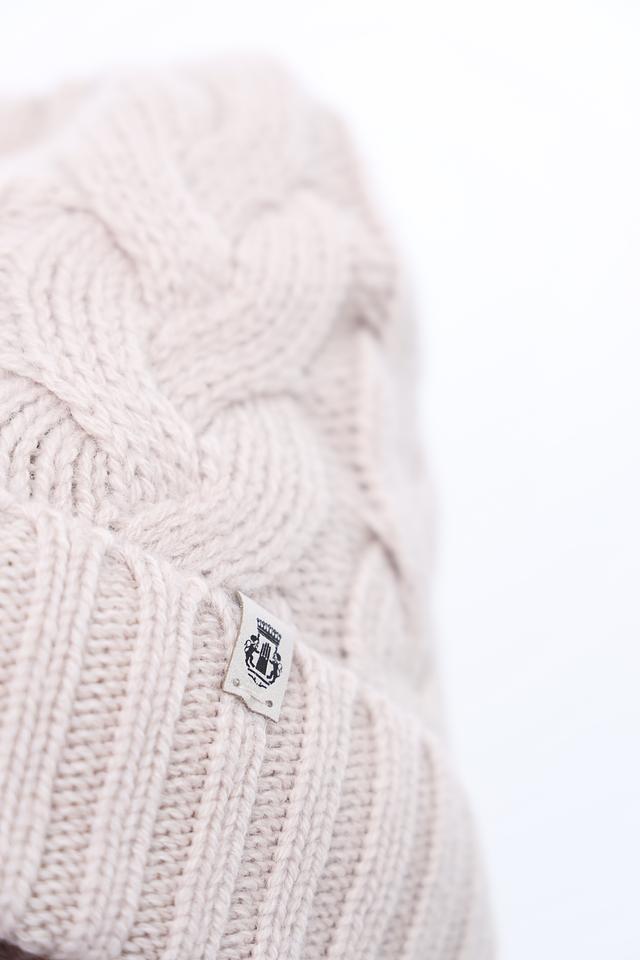 Шапка имеет классический дизайн с выразительной косой, придающей ей элегантный и стильный вид. Бежевый цвет шапки универсален и легко сочетается с различными вариантами верхней одежды и повседневного гардероба.
