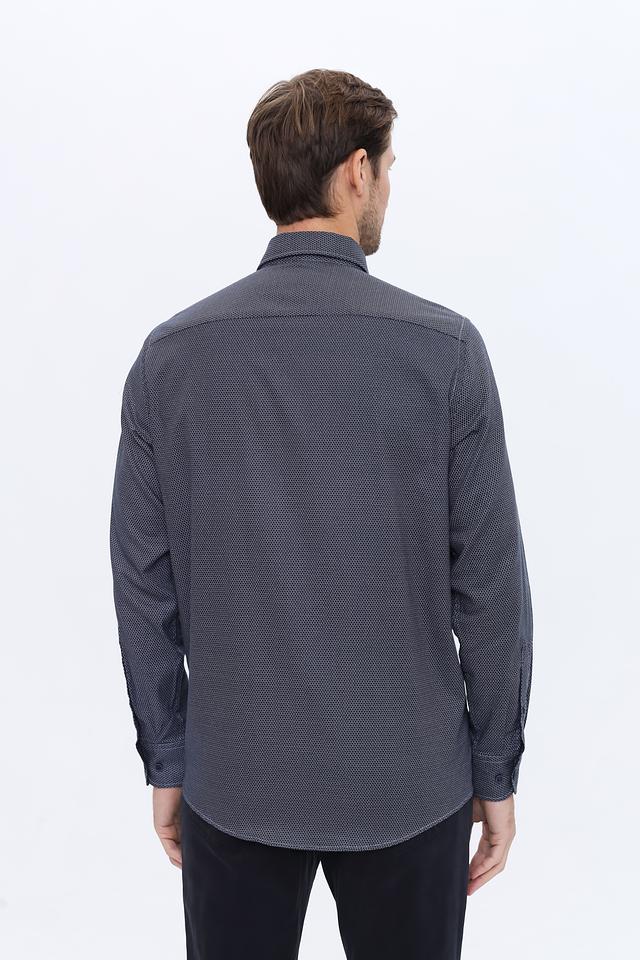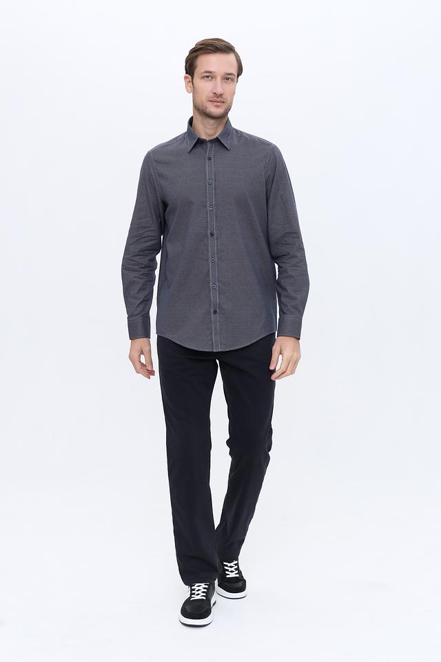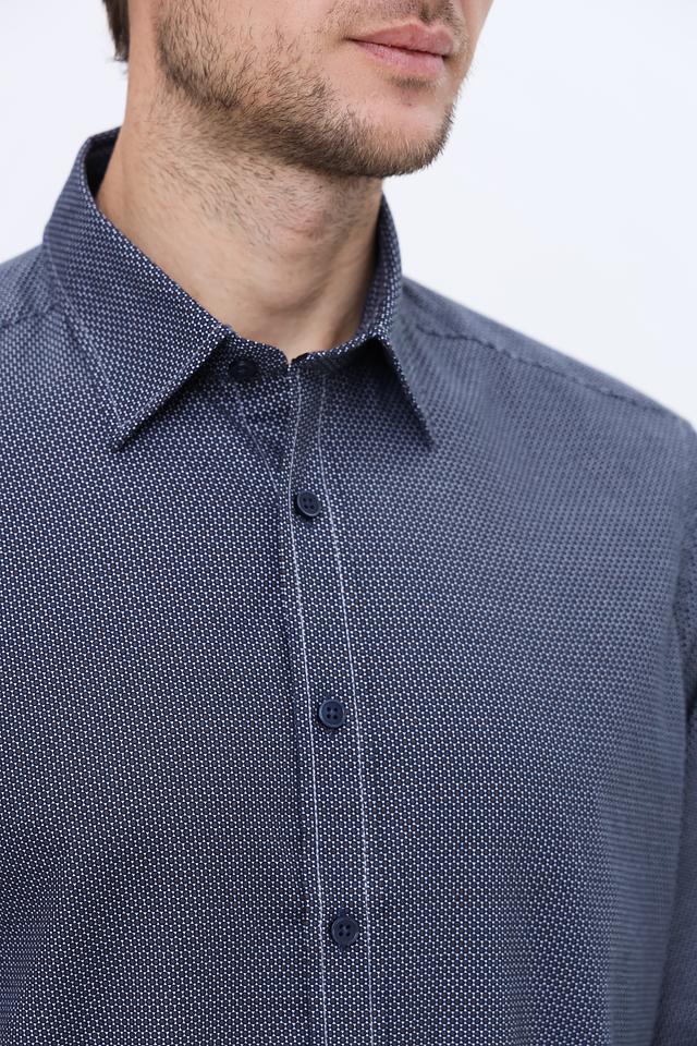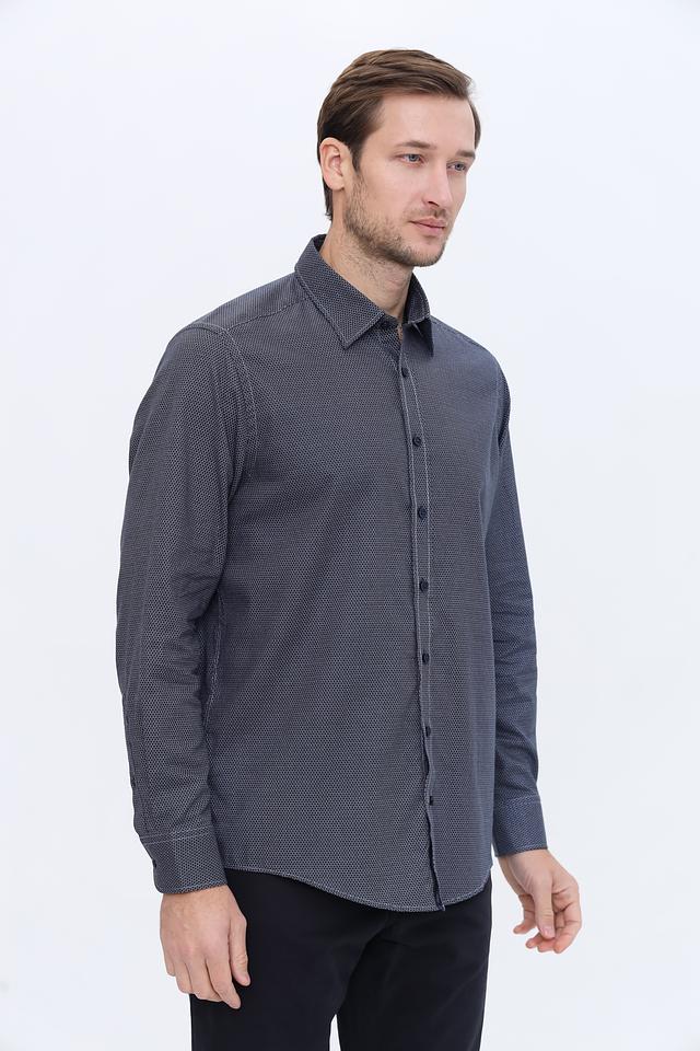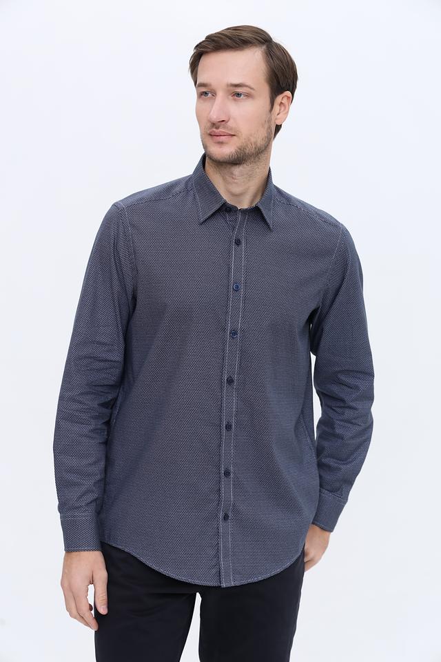Мужская рубашка Casa Moda синего цвета с мелким геометрическим рисунком. Классический крой и 100% хлопковый состав обеспечивают комфорт и удобство в носке. Состав: хлопок 100%