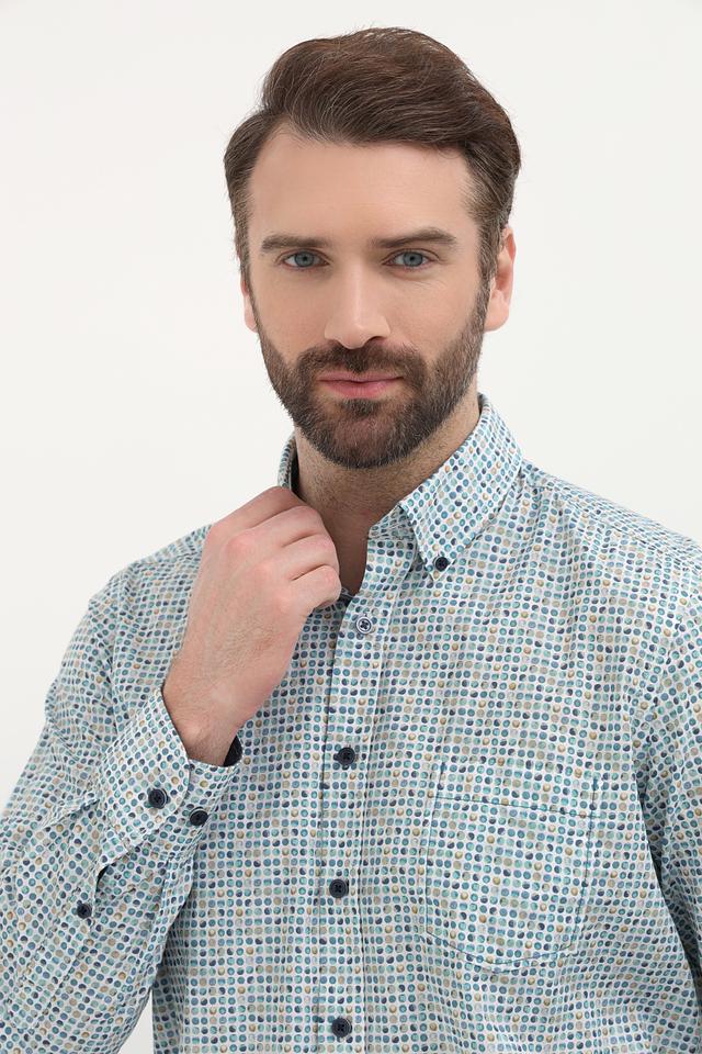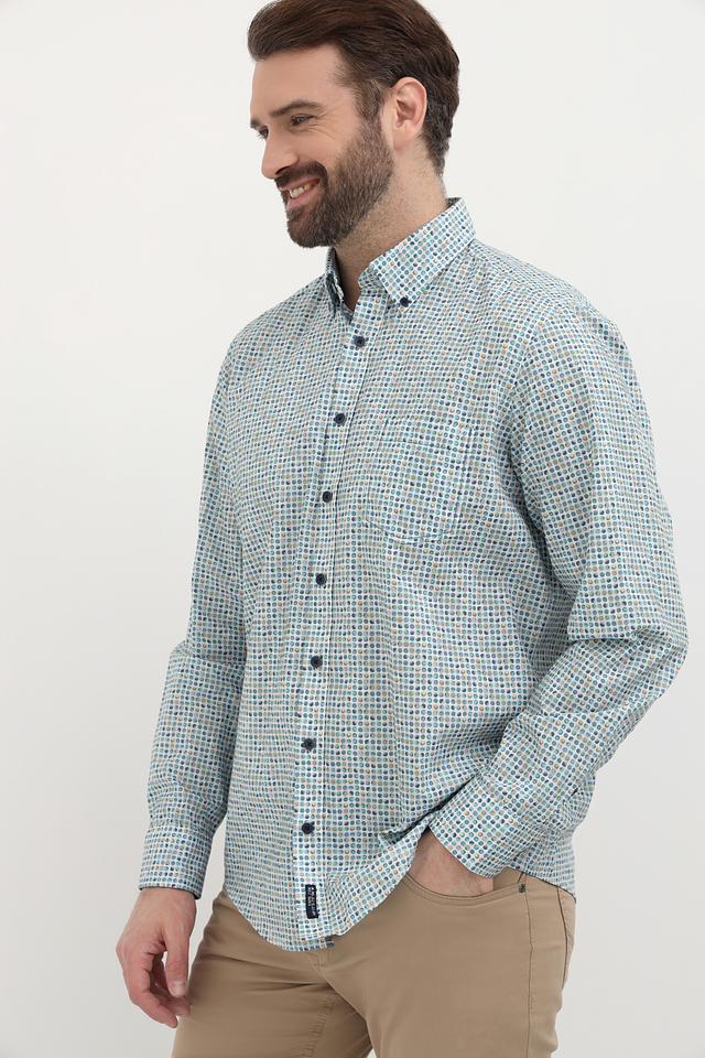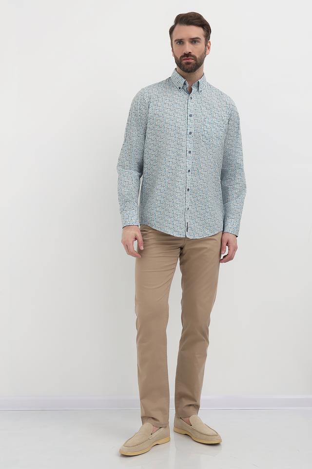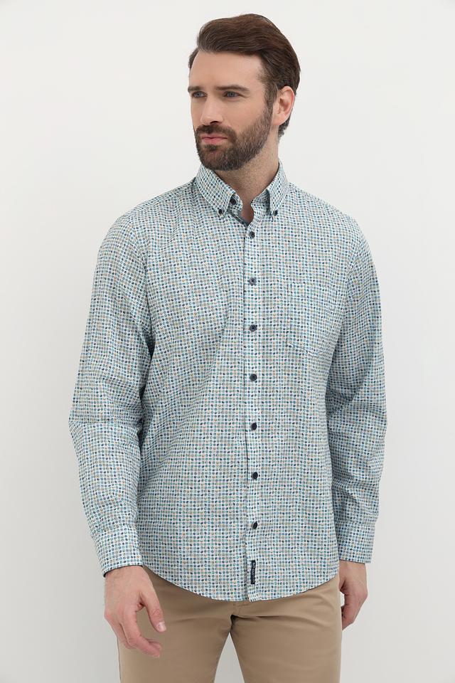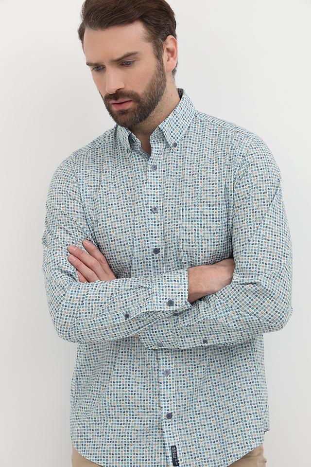 Мужская рубашка Casa Moda голубого цвета с оригинальным клетчатым принтом. Изготовлена из 100% хлопка, обеспечивающего комфорт и воздухопроницаемость. Отличный выбор для создания стильного повседневного образа. Состав: хлопок 100%