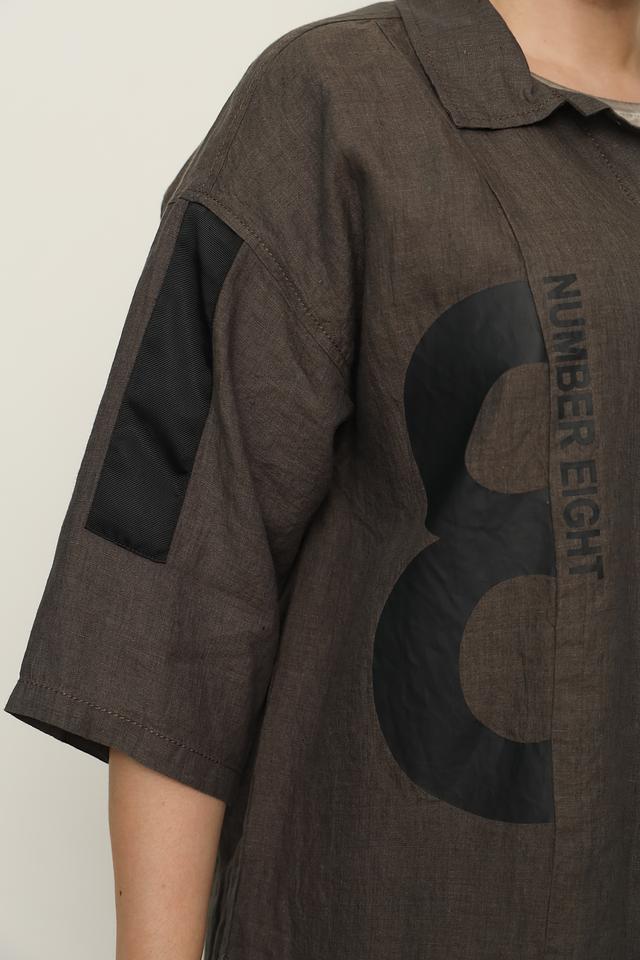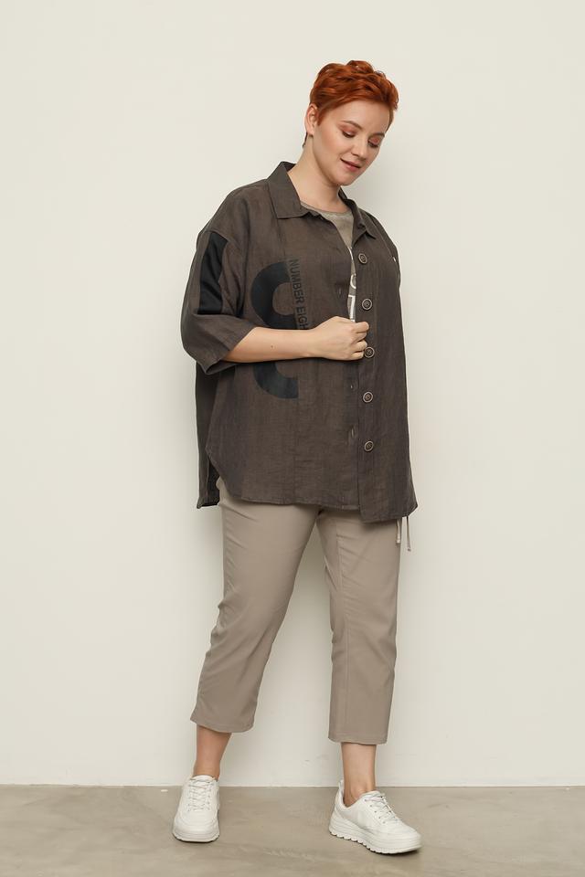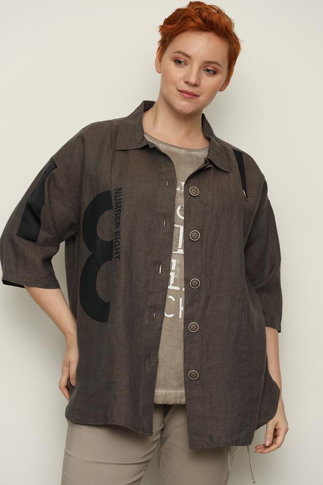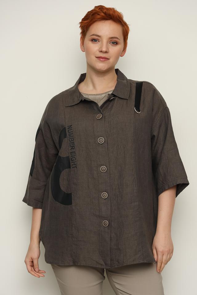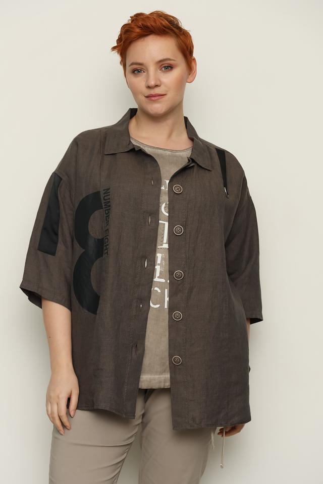 Стильная рубашка оверсайз от Doris Streich серого цвета с коротким рукавом и оригинальным графическим принтом. Изготовлена из 100% льна, обеспечивающего комфорт и воздухопроницаемость. Состав: лен 100%