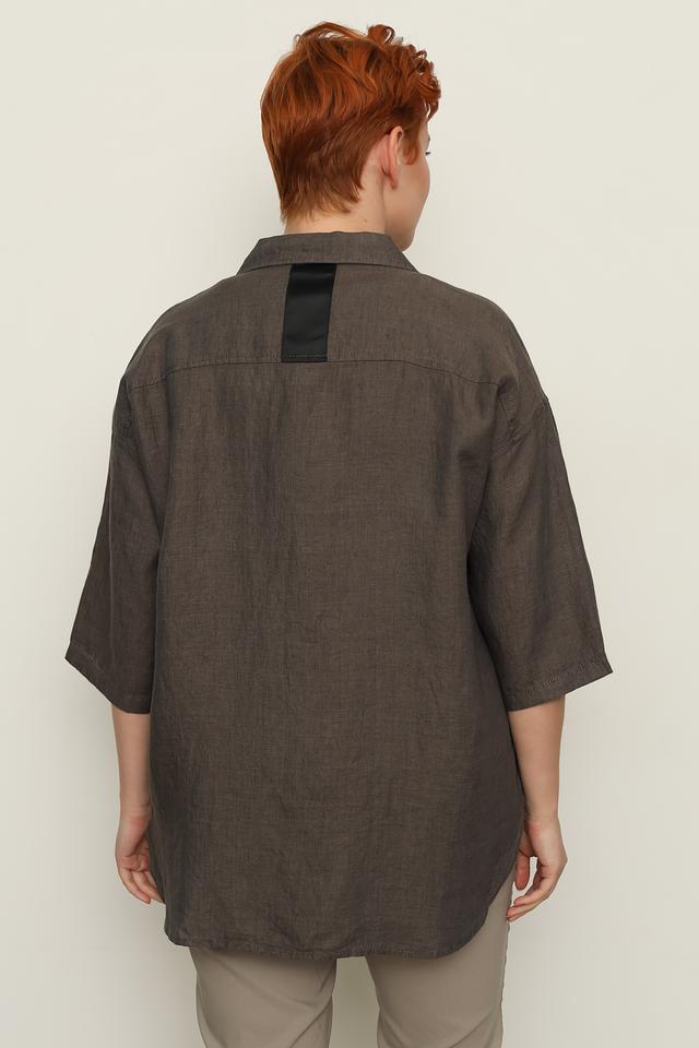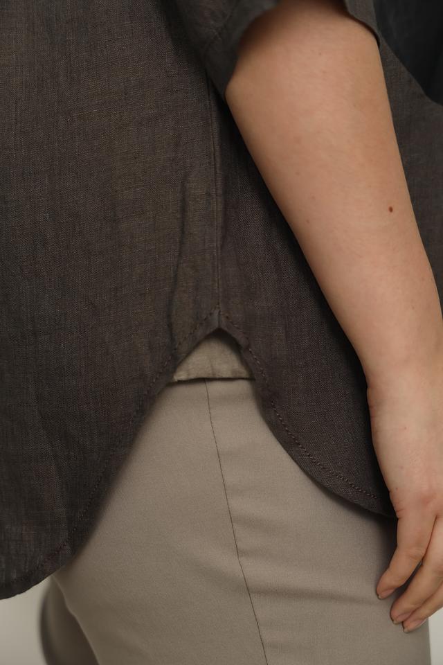 Рубашка выполнена из высококачественного 100% льна, который приятен к телу, хорошо пропускает воздух и обладает отличными гигроскопическими свойствами. Цвет рубашки – приглушенный серый, который легко сочетается с различными элементами гардероба.