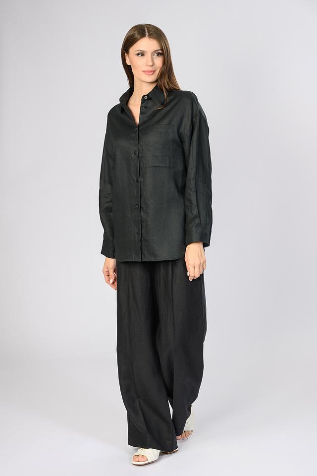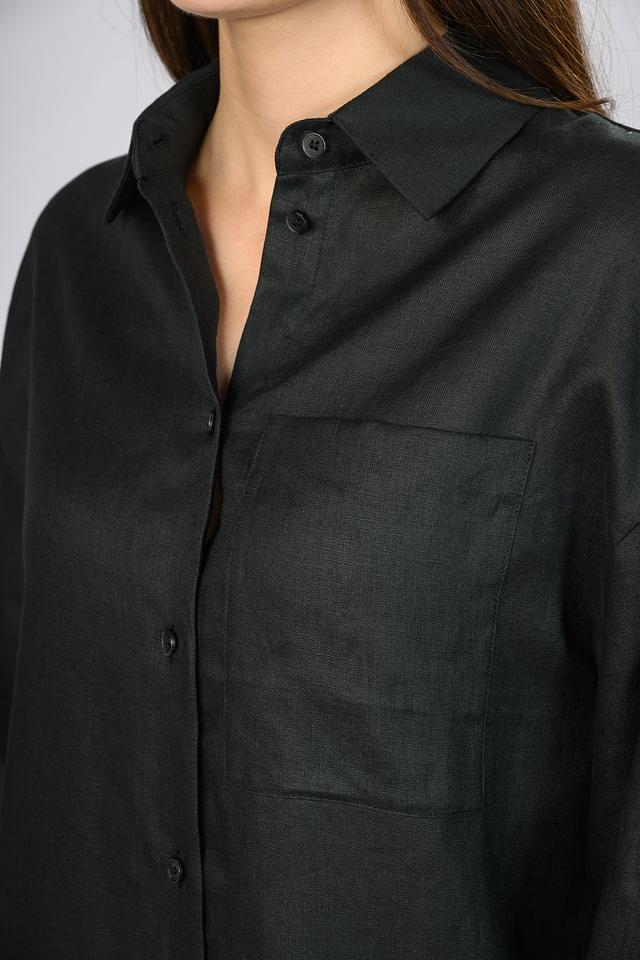 Чёрная рубашка Emka из 100% льна – это стильное и комфортное решение для создания повседневных образов. Прямой крой и длинный рукав обеспечивают свободу движений, а натуральный материал дарит приятные ощущения на коже. Состав: лен 100%