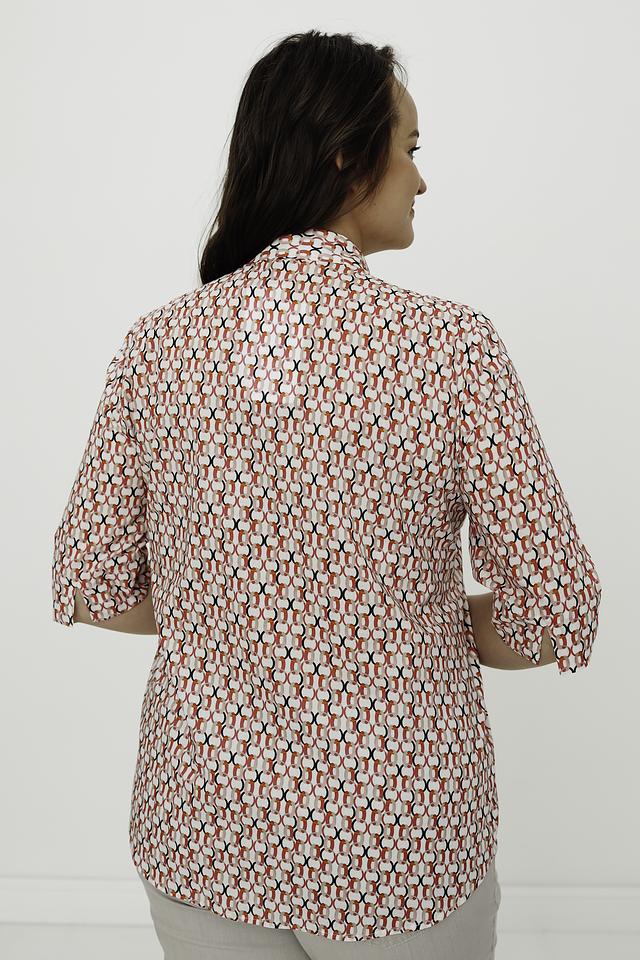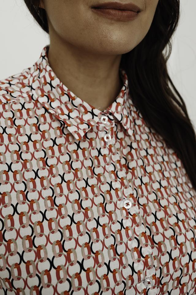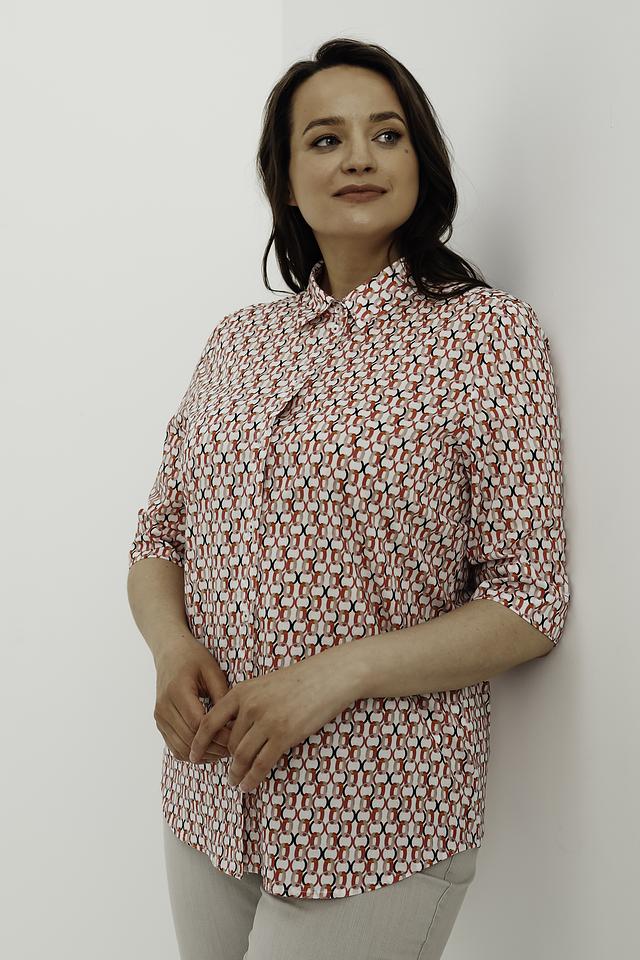 Женская рубашка Erfo белого цвета с ярким геометрическим принтом станет стильным дополнением к вашему гардеробу. Модель выполнена из 100% хлопка, обеспечивая комфорт и воздухопроницаемость. Состав: хлопок 100%