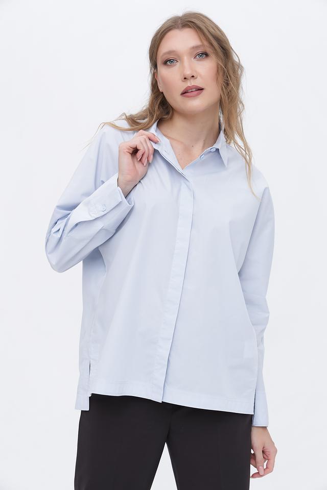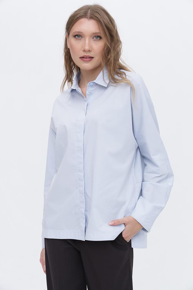 Голубая рубашка Marc Cain с длинным рукавом выполнена из 100% хлопка. Классический крой и лаконичный дизайн делают эту рубашку универсальным элементом гардероба. Состав: хлопок 100%