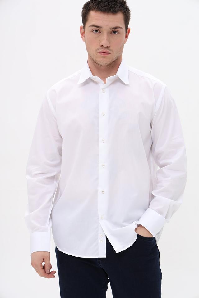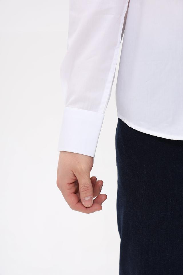 Белый цвет рубашки легко сочетается с различными элементами одежды, позволяя создавать разнообразные стильные образы. Качество пошива и используемых материалов гарантирует долговечность изделия.