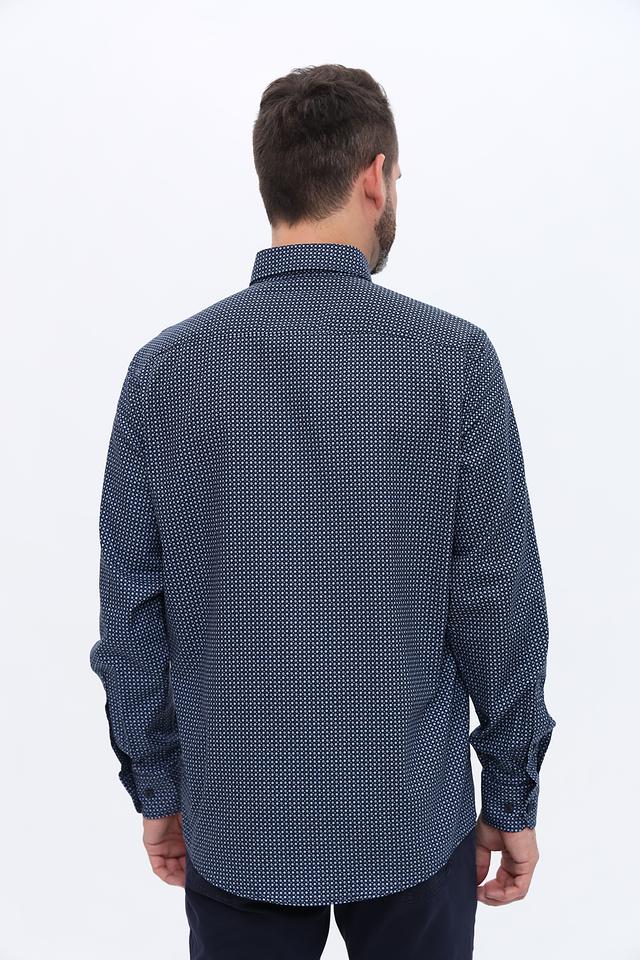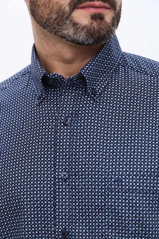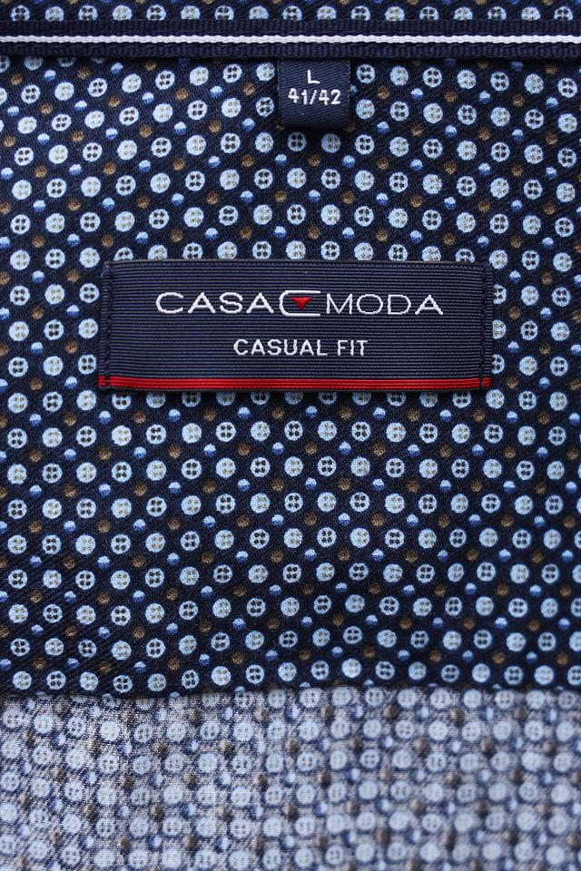 Мужская рубашка Casa Moda синего цвета с мелким геометрическим принтом. Классический крой и длинный рукав делают эту рубашку универсальным элементом гардероба. Изготовлена из 100% хлопка, обеспечивающего комфорт в носке. Состав: хлопок 100%