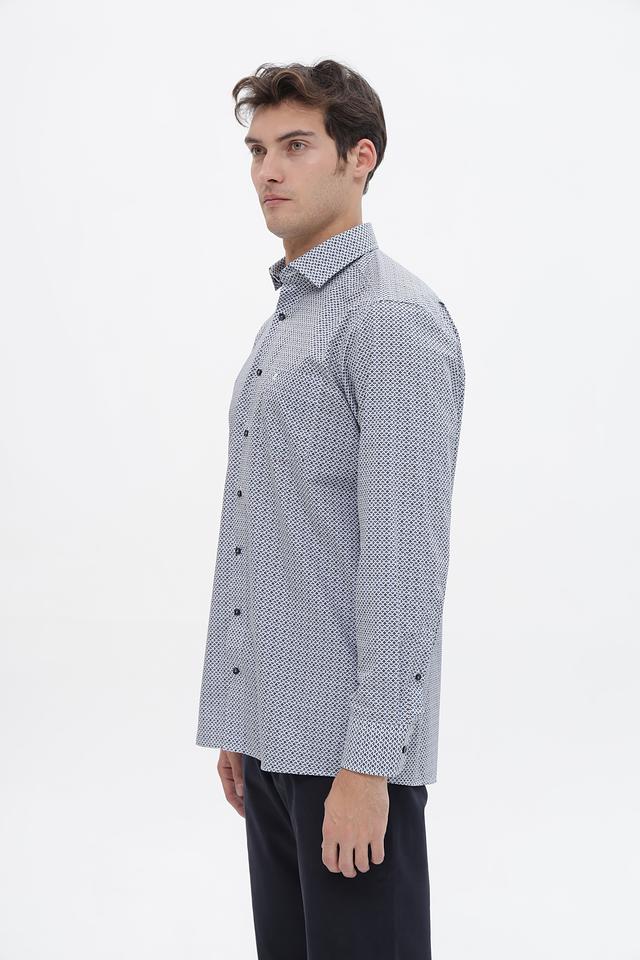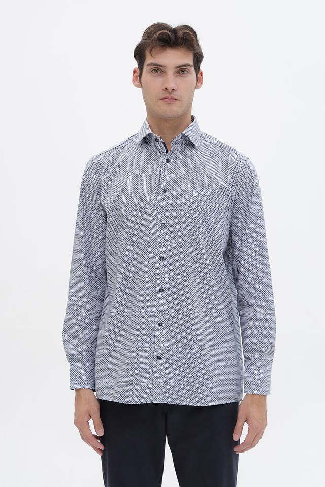 Мужская рубашка Casa Moda светло-серого цвета с геометрическим принтом. Изготовлена из 100% хлопка, обеспечивающего комфорт и воздухопроницаемость. Состав: хлопок 100%