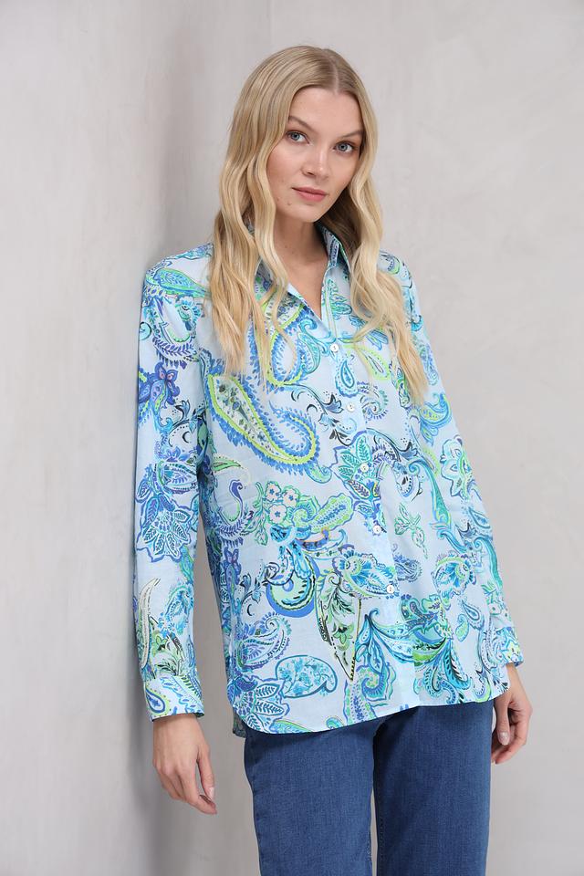 Голубая рубашка SE Stenau с длинным рукавом и ярким узором пейсли станет стильным дополнением к вашему гардеробу. Изготовлена из 100% хлопка, обеспечивая комфорт и воздухопроницаемость. Состав: хлопок 100%