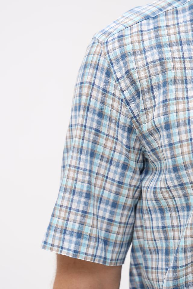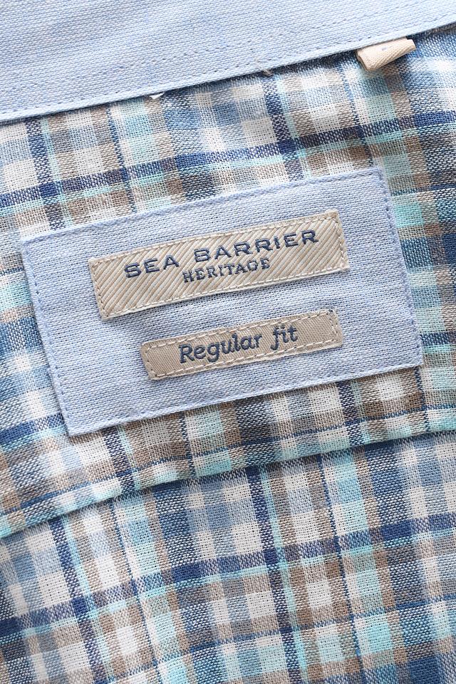 Мужская рубашка Sea Barrier голубого цвета в классическую клетку – отличный выбор для создания повседневного образа. Изготовлена из натурального смесового материала, обеспечивающего комфорт и воздухопроницаемость. Состав: лен 55%, хлопок 45%