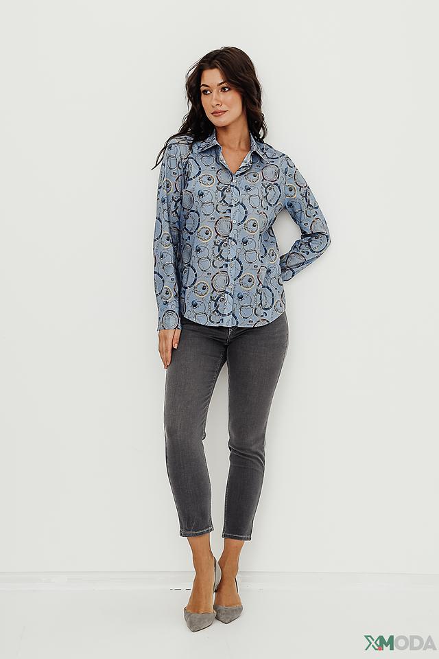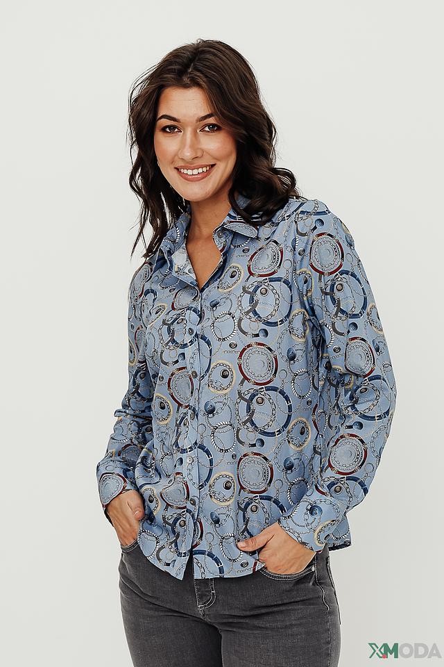Женская рубашка Sommer mann голубого цвета с оригинальным принтом в виде цепочек. Изготовлена из 100% хлопка, обеспечивающего комфорт и воздухопроницаемость. Стильное решение для создания повседневных образов. Состав: хлопок 100%
