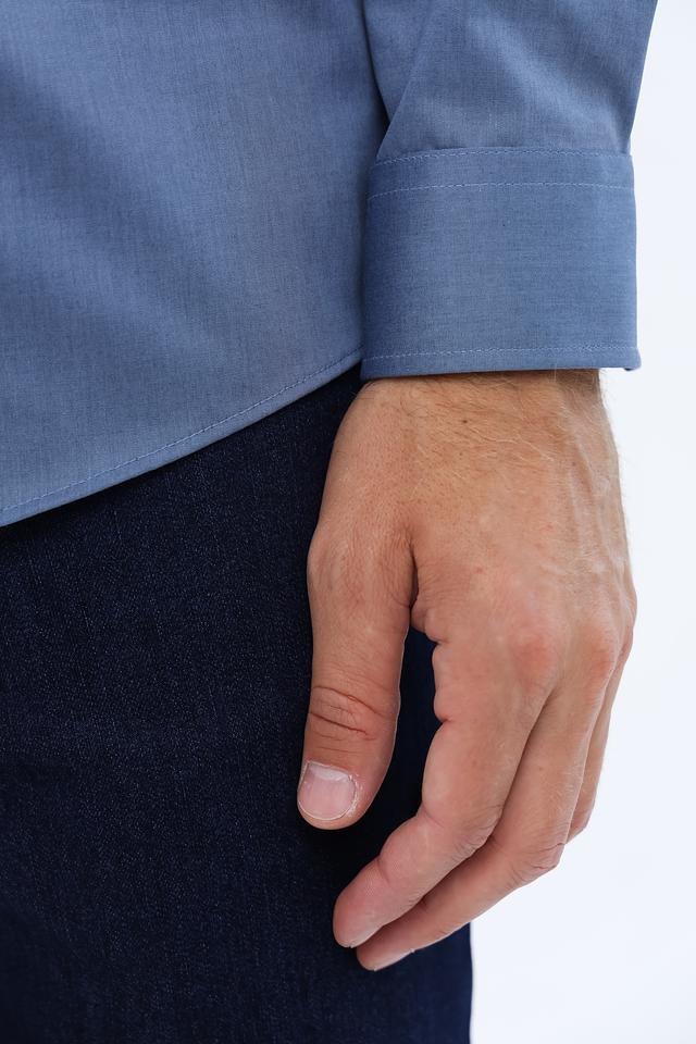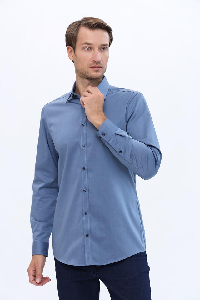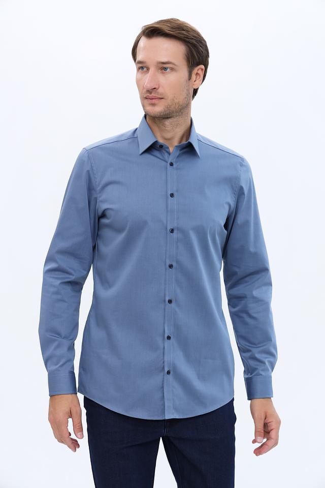 Рубашка имеет классический крой с длинными рукавами и стандартной посадкой. Застёжка на пуговицы, манжеты на пуговицах и воротник придают ей элегантный вид. Изготовлена из 100% хлопка, что обеспечивает комфорт при носке и хорошую воздухопроницаемость.