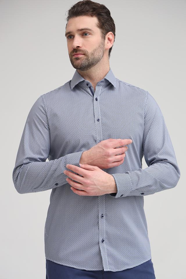 Мужская рубашка Venti голубого цвета с мелким геометрическим принтом. Классический крой и длинный рукав делают эту рубашку универсальным элементом гардероба. Изготовлена из 100% хлопка, обеспечивающего комфорт в носке. Состав: хлопок 100%