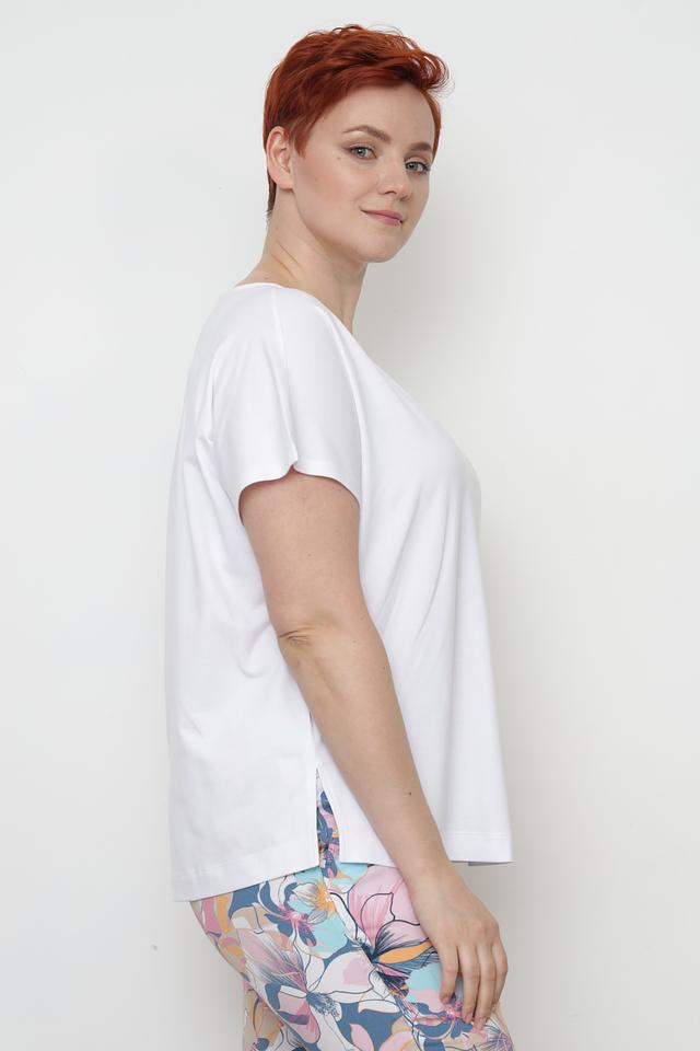 Белая футболка Samoon из мягкого трикотажа станет отличной базой для вашего гардероба. Модель свободного кроя с короткими рукавами обеспечит комфорт в течение дня. Состав: лиоцел, хлопок, эластан. Состав: лиоцел 65%, хлопок 30%, эластан 5%