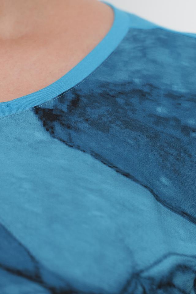 Бирюзовая блуза Samoon с оригинальным принтом в виде мраморных разводов станет стильным дополнением к вашему гардеробу. Модель свободного кроя из мягкой вискозы обеспечит комфорт в течение дня. Состав: вискоза 92%, эластан 8%