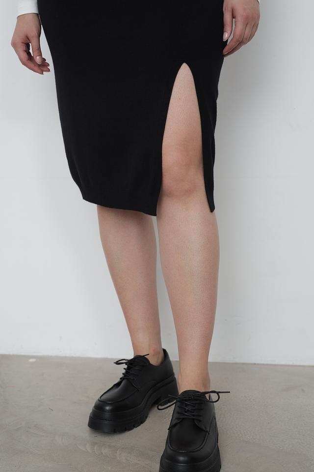 Юбка имеет миди длину и облегающий силуэт, который подчеркивает фигуру. Эластичный пояс обеспечивает удобную посадку и не сковывает движений. Оригинальный разрез сзади добавляет юбке динамичности и привлекательности.