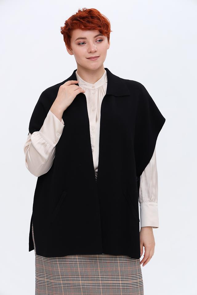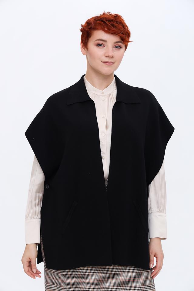 Жилет имеет прямой крой и лаконичный дизайн, что делает его универсальным и подходящим для женщин любого возраста. Отложной воротник добавляет элегантности, а отсутствие застежек обеспечивает свободу движений и комфорт в носке.