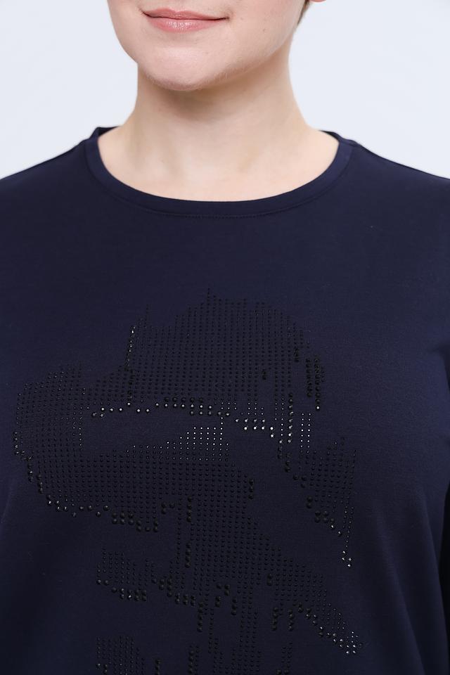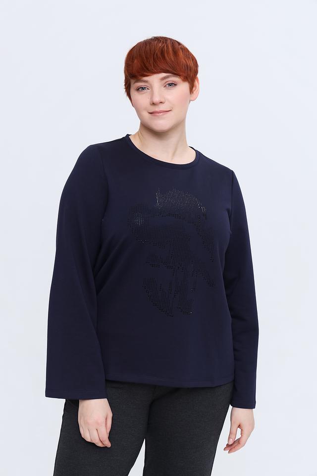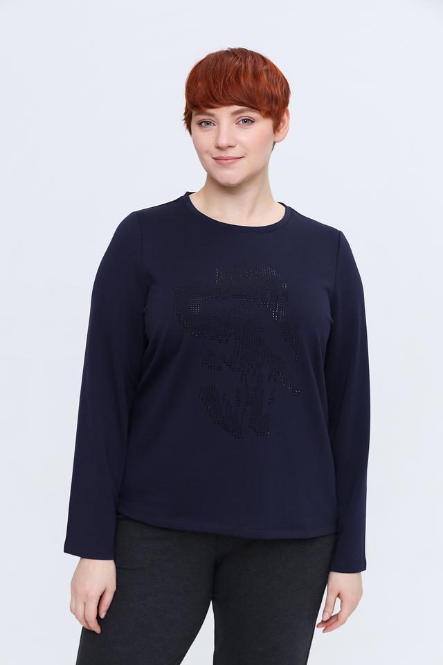 Стильный пуловер Samoon тёмно-синего цвета, украшенный эффектным декором из страз. Модель выполнена из мягкого и приятного к телу трикотажа, обеспечивающего комфорт в носке. Идеально дополнит повседневный гардероб. Состав: полиэстер 68%, вискоза 29%, эластан 3%