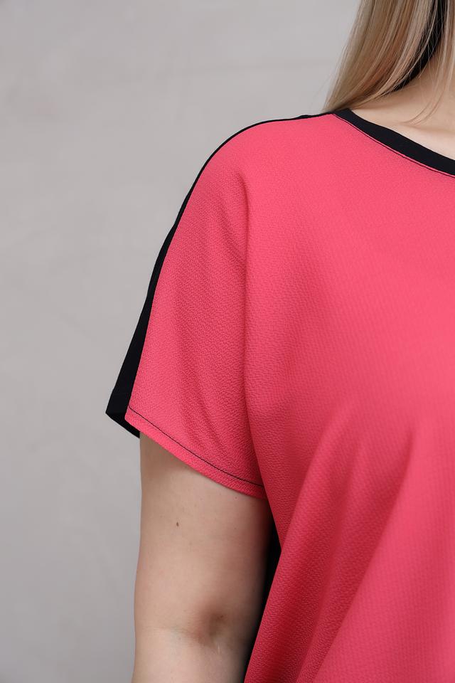 Блуза имеет свободный крой, который не сковывает движений и позволяет создать расслабленный образ. Короткие рукава и округлый вырез горловины делают ее универсальной и подходящей для различных случаев.